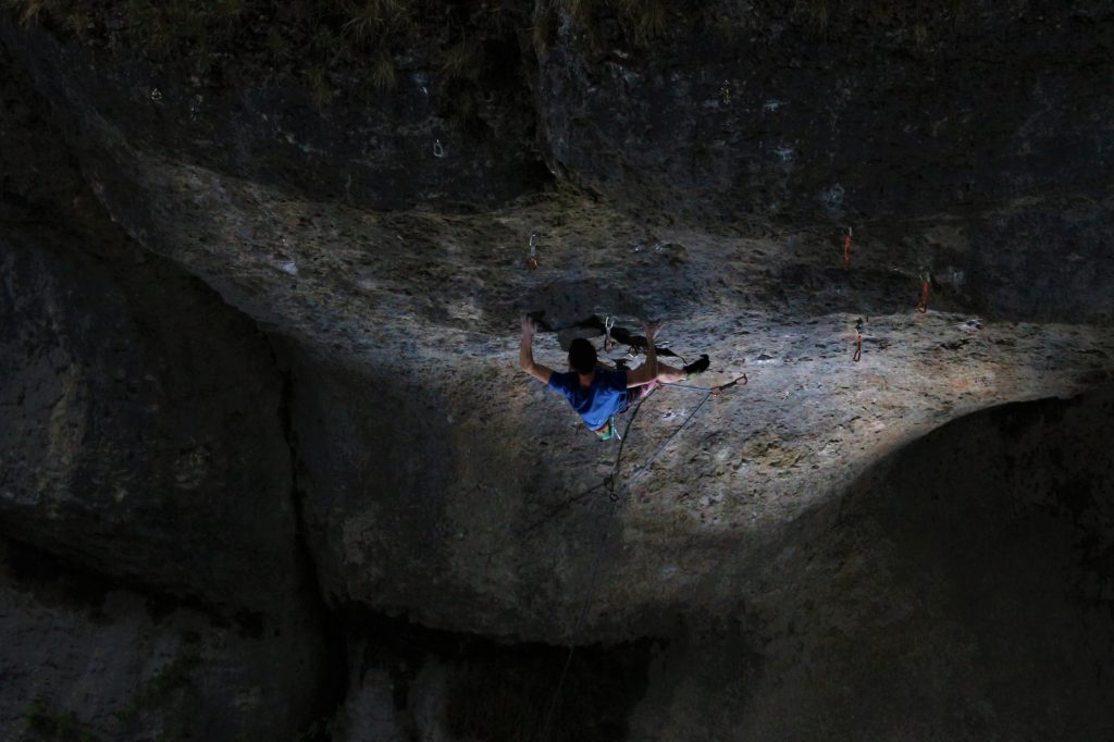 Moritz Welt ist zur Zeit gut in Form und konnte sich diesen Monat schon Begehungen von „Raubritter“ (XI-/8c) am Eldorado, „Psychotherapie“ (XI-/8c) am Angerstein und die Erstbegehung von „Vietcong“ (11-/8c) an der Ringlerwand holen. Nun legt er noch eine Schippe drauf und kann endlich sein Projekt vom letzten Jahr, „Demonized“ (XI-/XI, 8c+), in den Bärenschluchtwänden im Nördlichen Frankenjura zu den Akten legen. Diesmal mit zweiten Versuch am Tag. Die Markus Bock-Route aus dem Jahr 2010 wieder recht boulderlastig, was den Moritz ja bekanntlich liegt ;-). Moritz projektiert ja jetzt noch eine „etwas“ schwerere Route, soll wohl eine rechte bekannte „9a“ sein ;-).