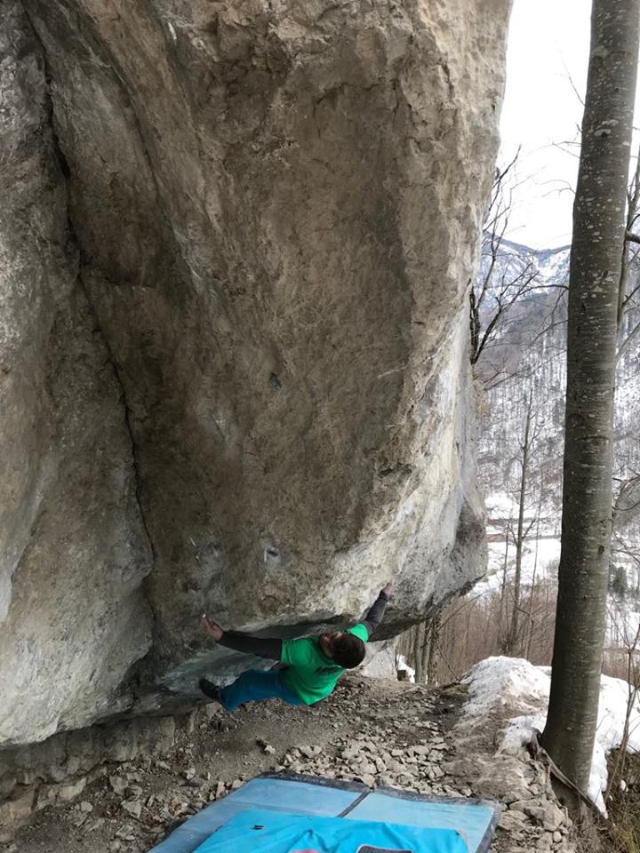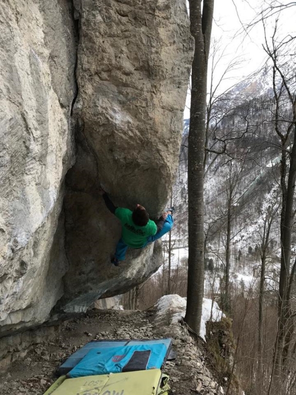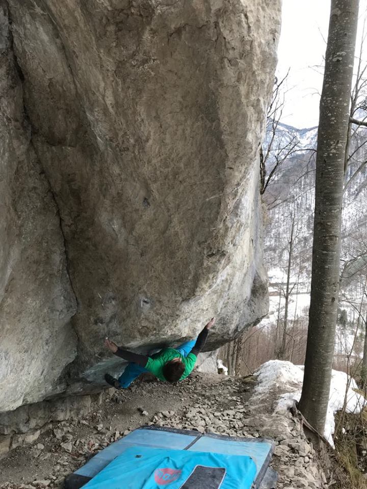 Jetzt klang es so: „Booom! Second ascent, ten years after Toni made the FA! Sick fridge with perfect compression moves. Thanks to Toni and the crew for the support! Took me quite a few sessions. Last year I injured my left biceps/shoulder on it and it took a lot of time to get fully recovered. „