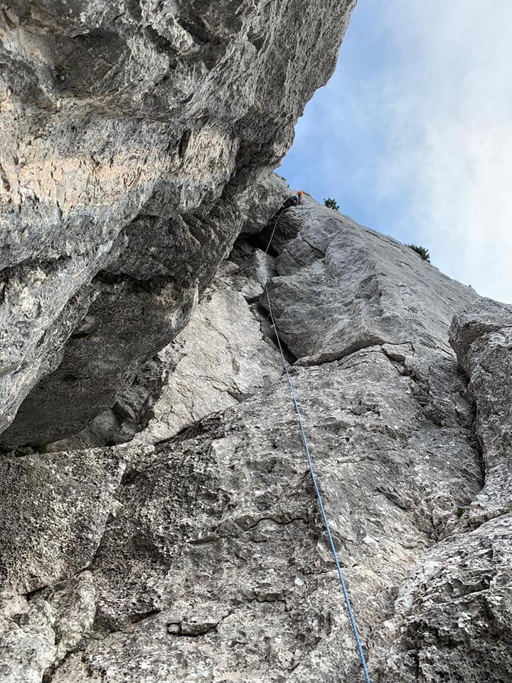 Trotzdem, deswegen oder erst Recht ging’s im Morgengrauen zur Predigtstuhl Westwand, „Direkte Nordwestrisse“ – Julius berichte. Viel (mehr) gibt’s nicht zu sagen (ausser vielleicht, dass man irgendwie zur mehr oder weniger offensichtlichen Schwachstelle im Wandriegel nach dem Ostler-Zustieg finden muss, danach einfach den H und schönsten Rissen nach… und dass alle Stände mit 2 neuen Schlaghaken markiert wurden), daher Zitat Philipp: „war ja wohl die geilste Seillänge bisher im Kaiser“ …das spricht für sich (bzw. für die Route) ?! Um 11:00 stehen wir im Bonzog-Kessel, Nebel zieht um die höchsten Kaisergipfel, die Westkante am Südgipfel wird gegen pünktlich heim kommen eingetauscht…mal wieder… was auch das Stichwort bleibt: wir kommen Mal wieder!