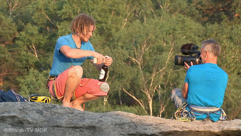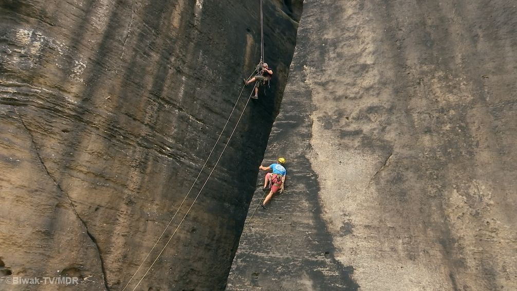** TV-Journalist Thorsten Kutschke hat das Hanicke-Projekt am Jäckelfels mit seinem Filmteam für die MDR-Sendung „BIWAK“ begleitet. Eine Langfassung des Films mit ausführlichen Interview-Sequenzen wird am 14. und 16. November auf dem Dresdner „Bergsichten“-Festival auf der großen Leinwand gezeigt.