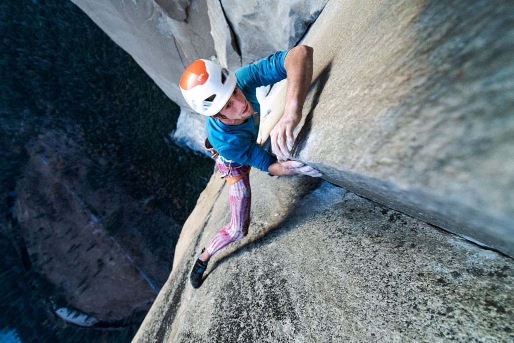 Sébastien Berthe konnte sich eine der seltenen freien Begehungen der legendären „Nose“ am El Capitan im Yosemite holen. Er starte dafür von unten und erreichte mit seinem Partner Loic Debry nach acht Tagen den Ausstieg.