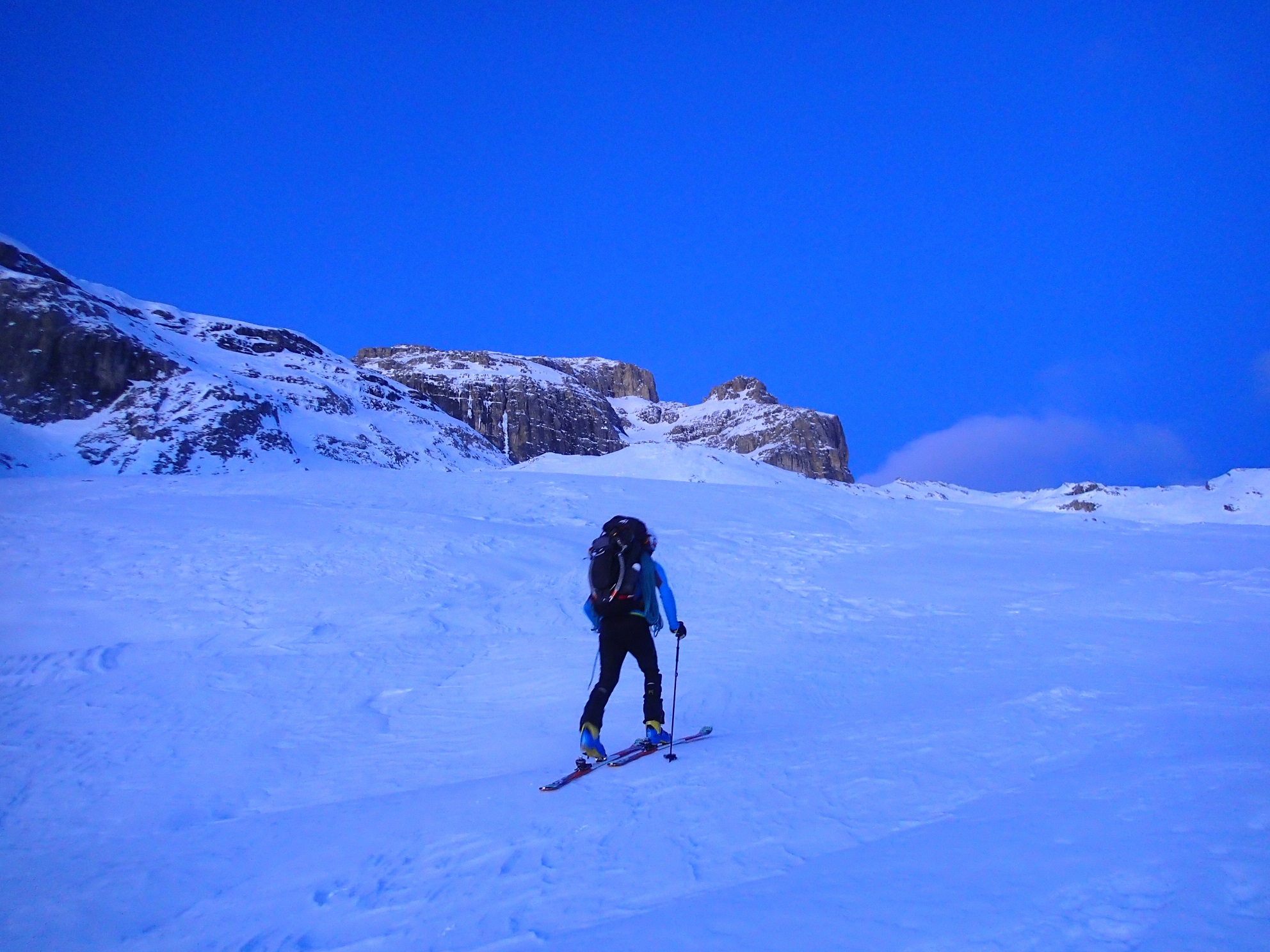 Mit Skiern vom Campolongopaß in 1,30 Stunden.