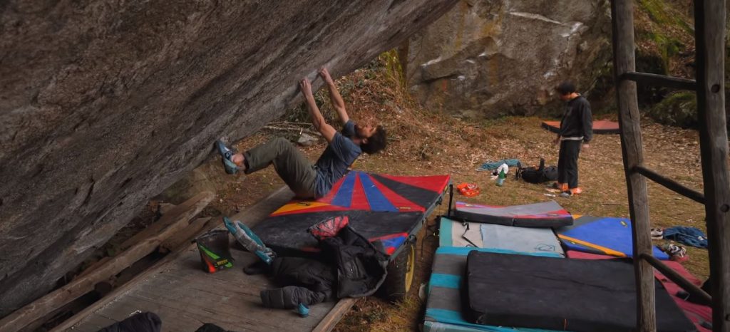Unglaublich: Jimmy Webb konnte mit „Lucid Dreaming“ in Bishop (Kalifornien) seinen 32. Boulder 8C oder härter klettern. Nun konnte er sich die erste Wiederholung von „Off the wagon-low“ (8C+) holen. Da mit konnte Jimmy von 18 8C+ Bouldern auf diesem Planeten nun 4 schon klettern. Ende 2018 konnte Shawn Raboutou dem Nalle Hukkataival Boulder „Off the wagon“ (8B+) im Valle Bavona noch einen „sitzenden“ Tiefstart dranhängen. Der Zug dürfte alleine dürfte im Grad 8A einchecken. Heraus kam mit „Off the wagon sit“ der wohl derzeit schwerste Boulder in der Schweiz. Jedenfalls schlug Shawn schon mal 8C+ vor. Ganz aus der Luft gegriffen war die Bewertung nicht, da der Originalboulder schon mindestens bei 8B+ eincheckt. Für den 13 Züge langen Originalboulder hat Nalle schon mal 8C vorgeschlagen. Hier das Video von mellow: