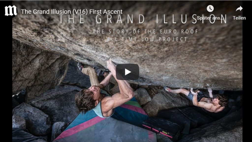 Nathaniel Coleman und Drew Ruana kämpften zusammen lange um den Durchstieg eines der besten und am härtesten Boulderprojekte in den USA, den Low-start von „Euro Roof“, einem V13 im Little Cottonwood Canyon von Chris Sharma. Letztlich schaffte Nathaniel den erfolgreichen Durchstieg des von den beiden „The Grand Illusion“ genannten Boulders. Für ihn der erste Boulder im Grad 8C+. Den Grad 8C hat er somit glatt übersprungen. Eines der sehenswertesten Klettervideos der letzten Jahre, ein Video von mellow.