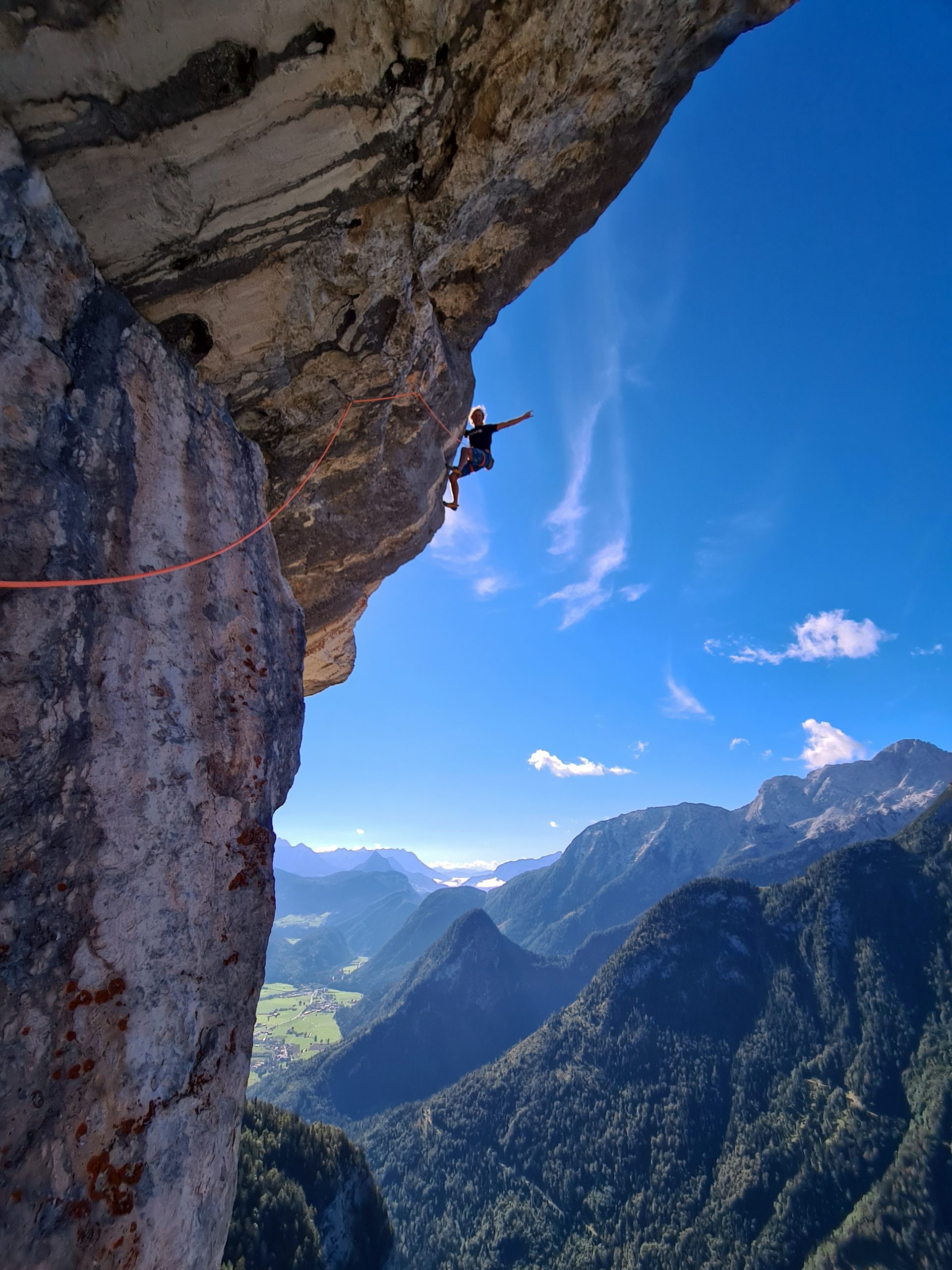 Hier sein Bericht: Vor 15 Jahren entdeckte ich bei einer Begehung der „Nase“ am Urlkopf zusammen mit Michael Meisl eine Linie, die so logisch wie spektakulär durch die beeindruckenden Dächer des zentralen Pfeilers zieht. Ein markanter Riss bildet die Leitlinie auf den ersten zwei Seillängen, dann kommt die Crux: das große Dach. An einer deutlichen Schwachstelle geht es wunderbar ausgesetzt über das vier Meter ausladende Bollwerk, danach kommen noch drei Seillängen unglaublich schöner Wandkletterei am besten Fels der Welt. Die Absicherung orientiert sich am minimalen Einsatz fixer Sicherungsmittel. Sechs Bohrhaken zur Zwischensicherung auf sechs Seillängen. Keile und Cams sind also Programm! Lange Jahre wartete die „Magellan“ auf die erste Rotpunktbegehung und erst in diesem Sommer kehrte ich dafür zusammen mit Guido Unterwurzacher zurück. Am ersten Tag scheiterten wir noch knapp, Hitze und fehlendes Glück vermasselten unseren Durchstieg, eine Woche später waren wir dafür umso früher am Start. Um sechs Uhr morgen stiegen wir ein, kletterten die ersten drei Seillängen bei idealen Bedingungen im Schatten und den Rest bei höchstem Genuss zum Ausstieg direkt am Gipfel des Urlkopf. So a scheena Tag!