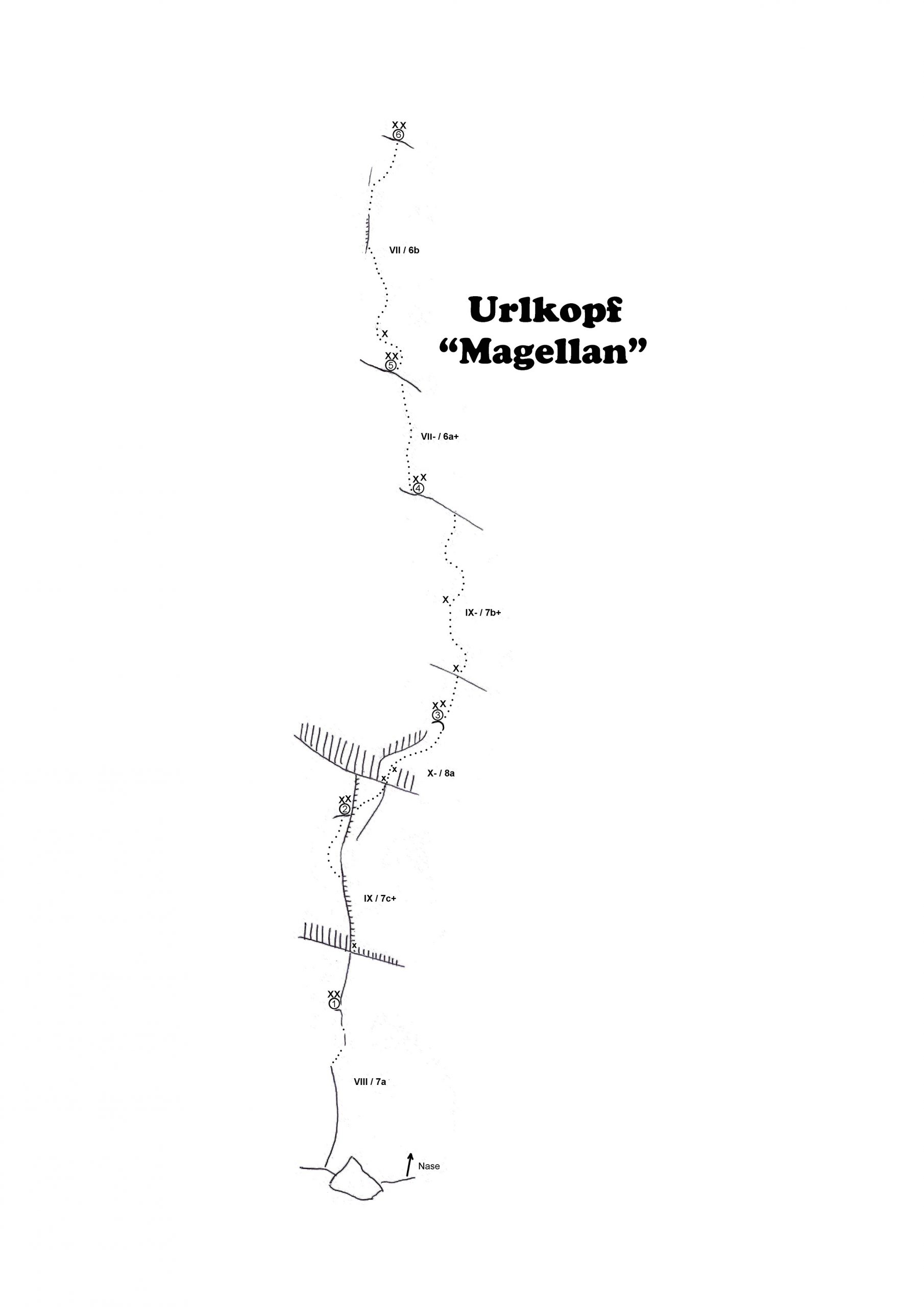 Erstbegehung: Urlkopf, „Magellan“, X-, 6 SL, 200m