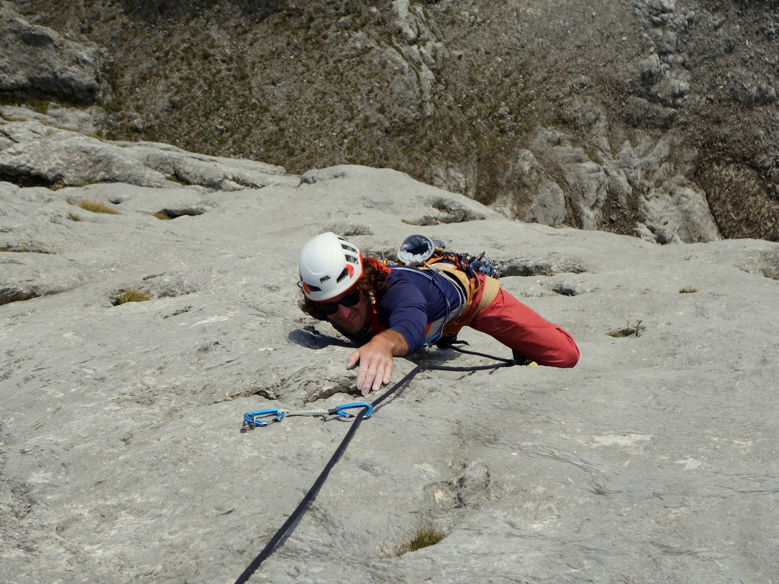 Im sonst eigentlich etwas verschlafenen Ostkaiser steppt weiterhin der Bär. Nachdem Christian Hechenberger und Simon Berger letztes Jahr am Südpfeiler der Maukspitze unterwegs waren, konnten die beiden jetzt eine neue Route in der Südostwand „erlegen“. Ihre Route „Woidmanns Donk“ bietet „steile und geniale, aber anspruchsvolle, alpine Kletterei im super Koasa-Fels“, verteilt auf sieben Seillängen und 260 Klettermeter . Die Schwierigkeiten erreichen den unteren 9. Grad.