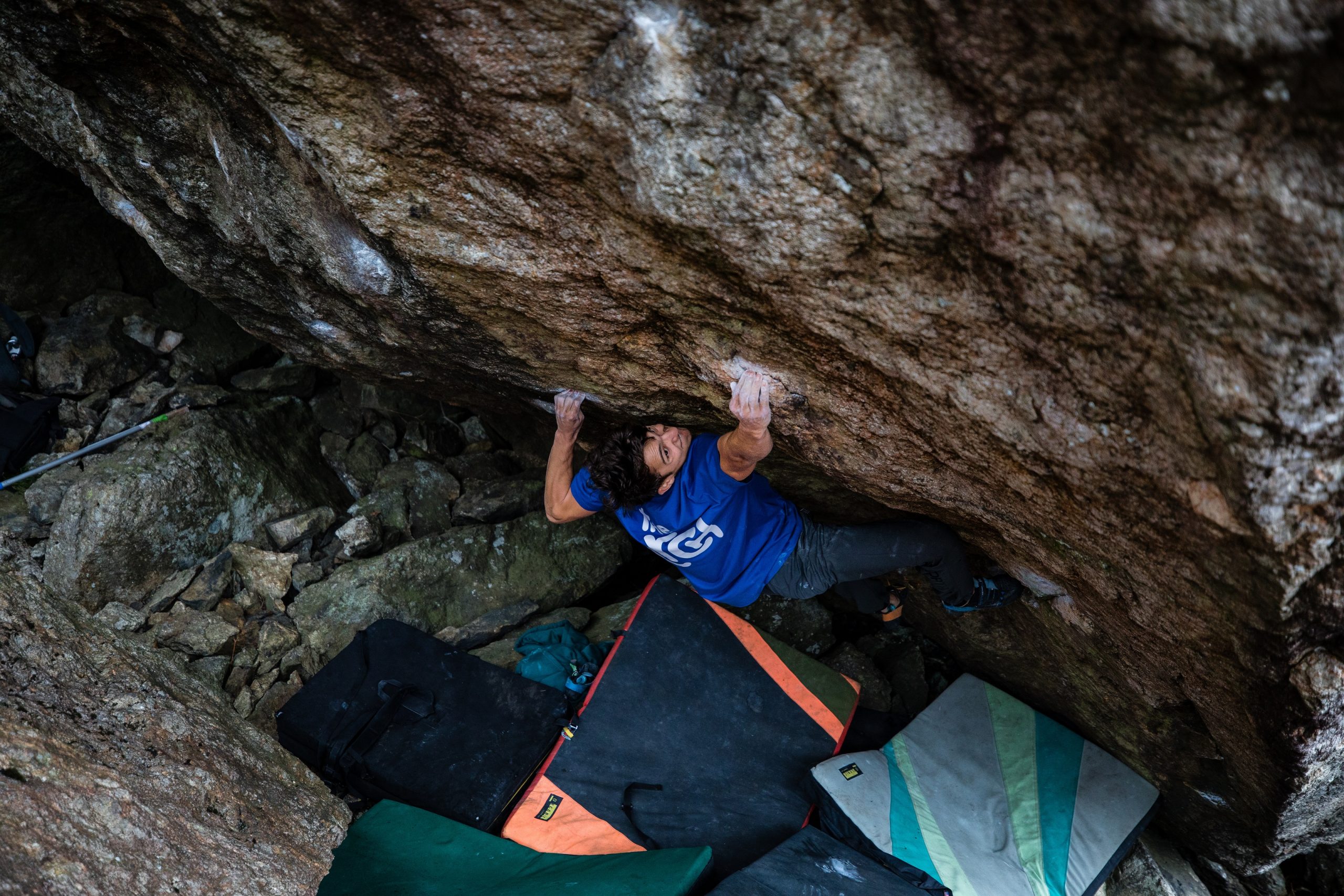 Vorher konnte Adain mit „Copperline“ 8B+ das erste seiner Topprojekte beenden. Der Boulder ist hauptsächlich am ausgezeichnetem rauem Fels und befindet sich in einer herrlichen Bergkulisse.