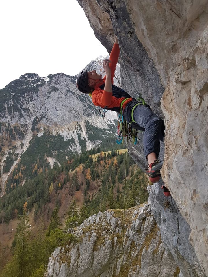 - 3. Seillänge (8- ) der „In Memoriam Matthias“. Mit Rest-Pump aus der Seillänge davor erstaunlich knapp