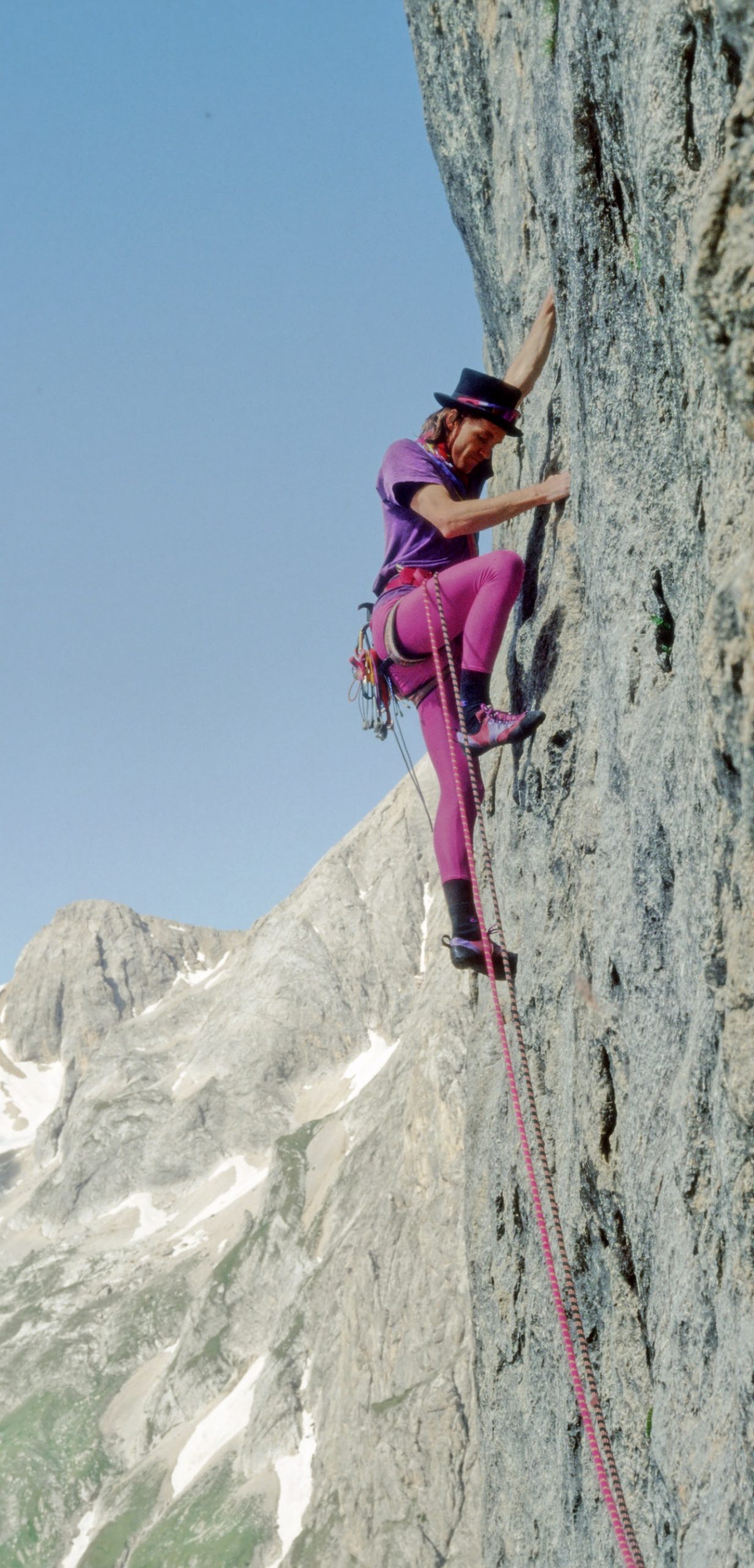 Hansjörg Auer und Thomas Scheiber gelingt dann, wiederum bis auf die letzten drei Seillängen, eine weitere Rotpunkt-Begehung.