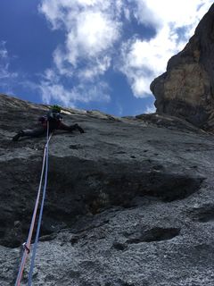 Von Ingo Knapp mit wichtigen Tipps ausgestattet, kann Much Mayr die erste Schlüsselseillänge nach Vorarbeiten im zweiten Versuch klettern , die zweite (Fast-)Zehnerlänge gelingt ihm sogar Onsight. Er bestätigt die Schwierigkeitsbewertung der Erstbegeher.