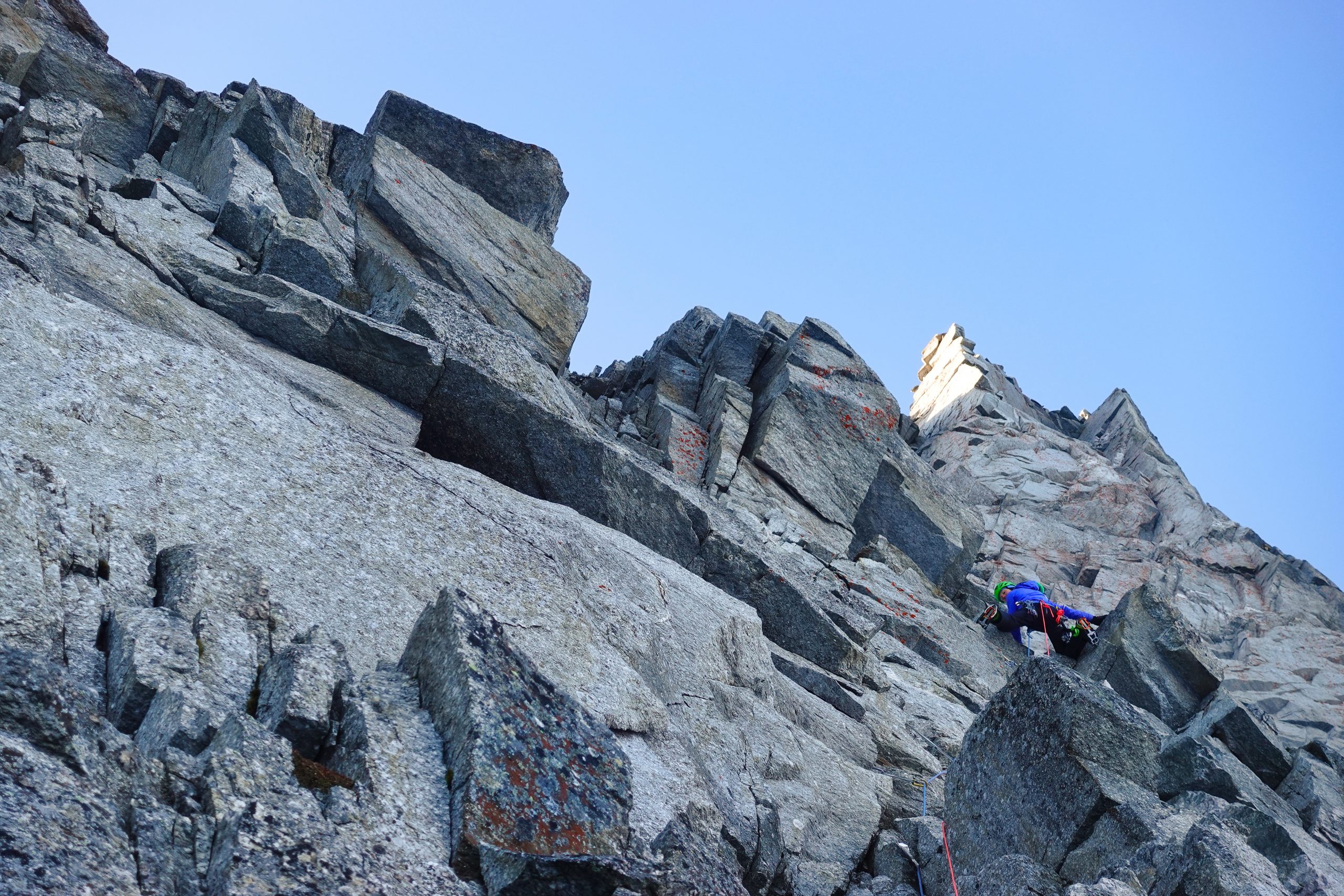 Am Morgen des 26.11. begannen wir um 5 Uhr bei moderaten -10 C° im Schein unserer Stirnlampen mit dem kurzen Zustieg von der Hütte, um 45 min später den Schlafsack am Einstieg der Nordwand erneut auszupacken. Verdammt, wir waren zu früh dran. In der Dunkelheit würden wir möglicherweise zum Einstieg finden aber die ersten schwierigen Seillängen würden wir unbedingt bei Tageslicht klettern wollen.