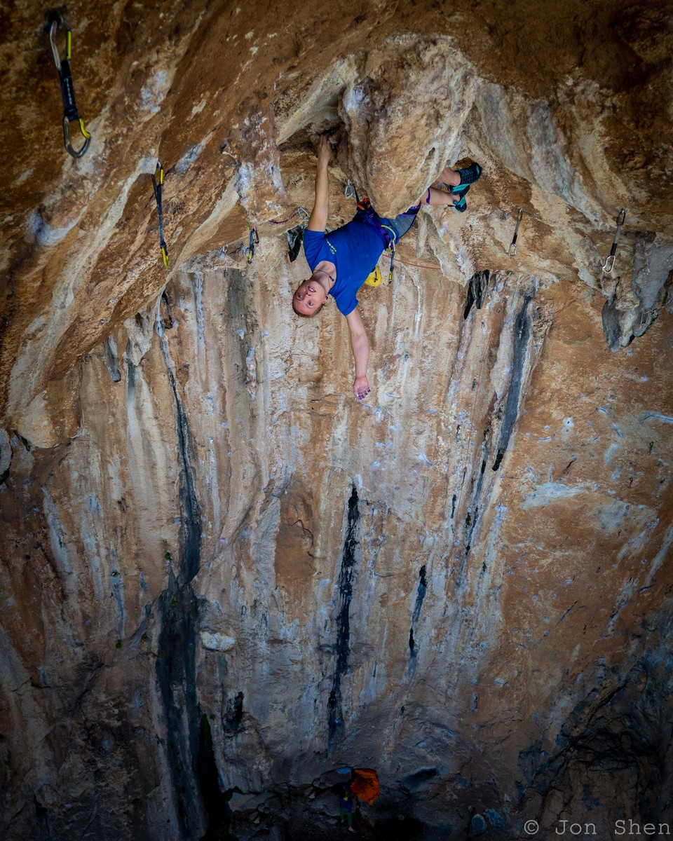 After finally sticking the big move from the ground that I kept on falling (pic 1), I luckily fought my way through the cave to the anchor! What a big journey!“