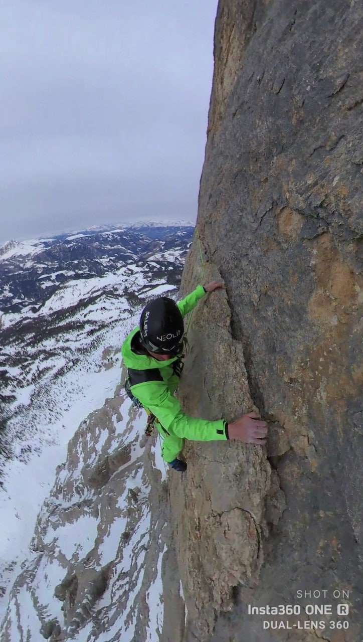 Am 4. März 2021 um 5.30 Uhr startete Simon am Parkplatz “Castalta”. Gegen 8.00 Uhr begann er zu klettern. Schon 12.15 Uhr stand er am Gipfel.