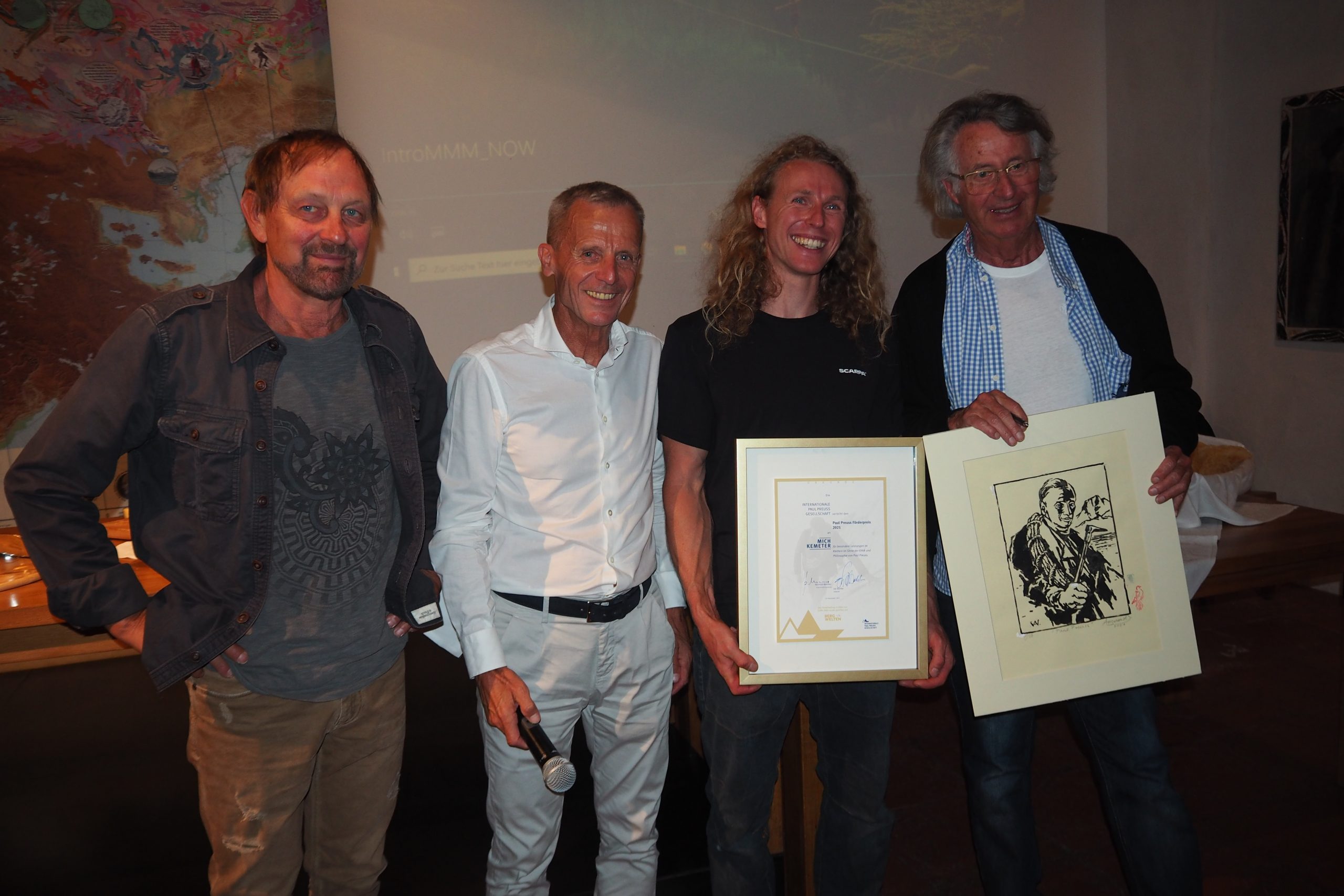 Dujmovits, Thomas und Alexander Huber, der letztjährige Preisträger Heinz Mariacher, Oswald