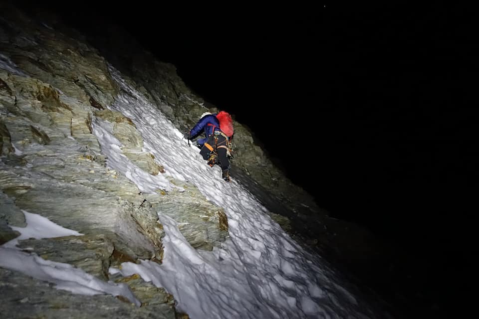 Wir haben also die „Bonatti“ an der Matterhorn-Nordwand geklettert: In einem Zug von Täsch übern Gipfel zur Solvay-Biwak, in etwa 23h (bei etwa 14h Kletterzeit), ziemlich grad aus und ohne unerwartet große (also nicht ohne!) Schwierigkeiten und Gefahren. Mit e-Bike bis Schwarzsee und mit zumindest einer längeren Variante im Mittelteil nach der SSL (ca. 5 SL bis zur Schmid links der mutmaßlichen Originalroute.