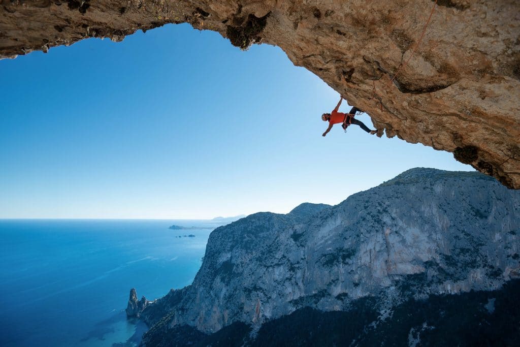 „Die Ogliastra an der Ostküste Sardiniens. Ein echtes Paradies für ambitionierte Kletterer, steile Wände, bizarre Türme und tatsächlich ist die Grutta Pintata an der Punta Giradili sogar einzigartig. Ich habe in all den Jahren keinen Überhang vergleichbarer Dimension gesehen!