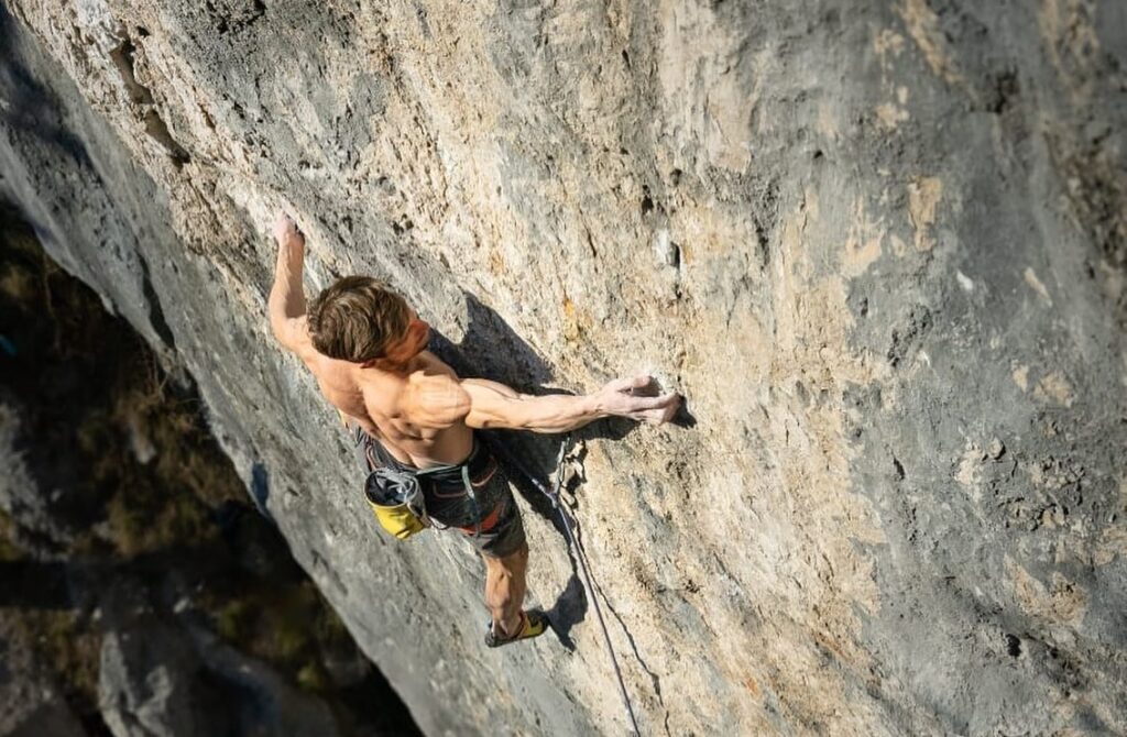 Der Tiroler Alfons Dornauer holt sich die 4. Begehung der legendären Route „Qui“ (9a+) an Geisterschmiedwand bei Kufstein in Tirol. Es war für Alfons seine erste 9a+-Route überhaupt.