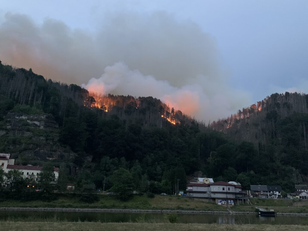 Auch in der rechtselbischen Gebieten der Böhmischen Schweiz brennt es immer noch. Auch hier sollte man die Wälder nicht betreten und die Rettungskräfte behindern.