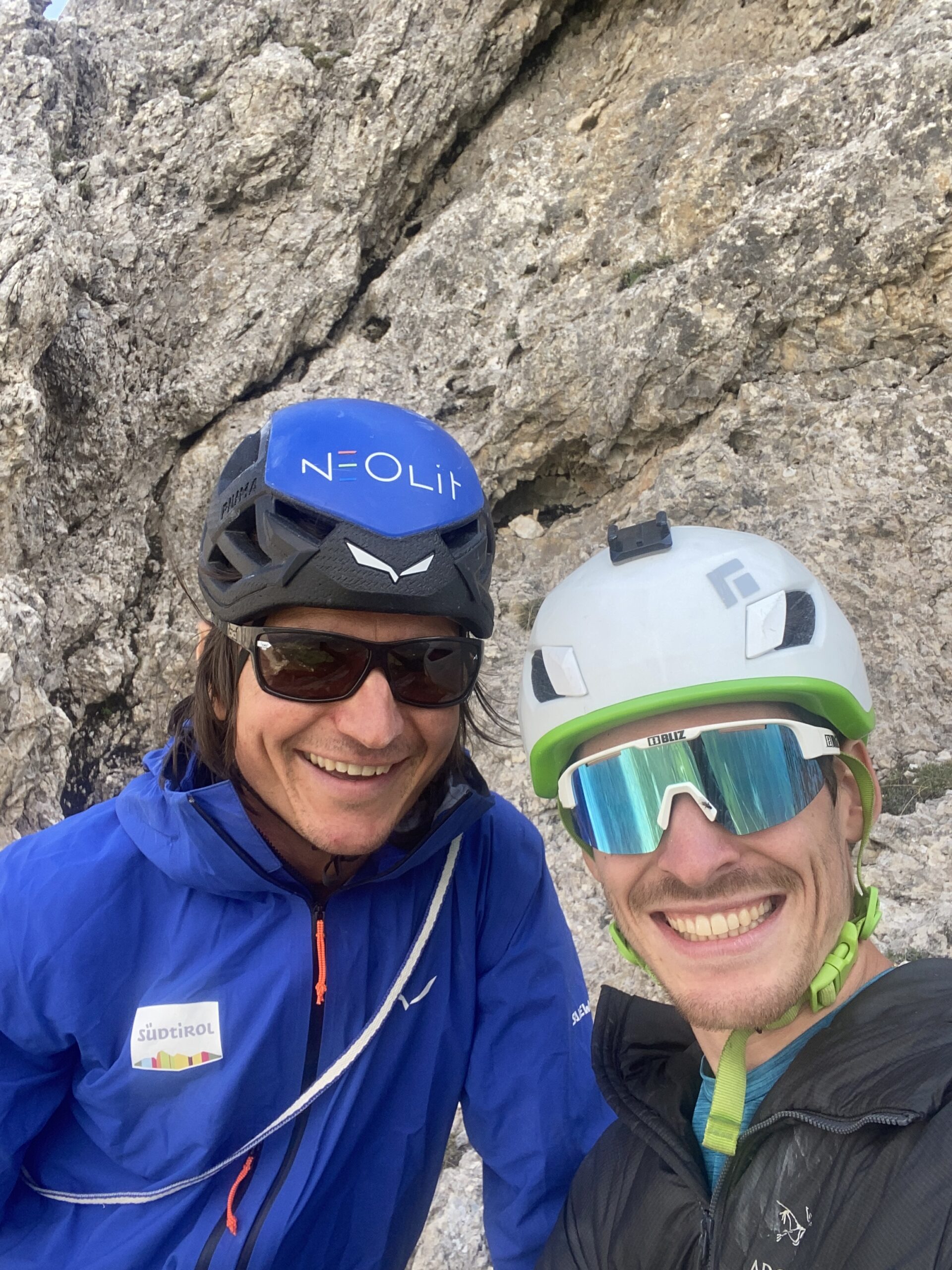 Sonntag, 22. Mai 2022, ich bekam einen Anruf von Simon, nach kurzem Plaudern und ein bisschen Scherzen, erzählte er mir von einer neuen Linie. Als er von einem Klettersteig nach Hause gefahren ist, sah er aufgrund der günstigen Lichteinstrahlung eine neue Linie am Crep de Boe, neben der Tour „Scharfe Helene“ die er zusammen mit Mark Oberlechner erschlossen hat. Es dauerte nicht lange und nachdem er mir ein Wandfoto schickte, trafen wir uns am 26. Mai und fuhren gemeinsam nach Alta Badia. Da Simon bereits den Zustieg kannte waren wir schnell beim Einstieg und nach einer kurzen Diskussion über die Linie waren wir uns einig und stiegen ein. Souverän und schnell kamen wir weiter, da Simon alle Seillängen onsight eröffnete. Nach einigen Seillängen kamen wir zur vermutlichen Schlüsselseillänge, aber nichtsdestotrotz konnte Simon auch diese onsight eröffnen. 370 Klettermetern und acht Seillängen bis zu 8(-) waren es bis wir das Ende der neuen Linie namens „Halli Galli“ erreichten. Das Wetter war nicht ganz so stabil und wir beeilten uns abzuseilen, ich sah am Gipfel während Simon bereits beim Abseilen war noch zur Wand nebenan hinüber und machte ein Foto davon, wie sich herausstellte hatte auch Simon diese Wand im Visier. Keine zwei Tage später haben wir wieder miteinander telefoniert und standen am 28. Mai voll bepackt am Wandfuß, dieses Mal aber an der Wand daneben, nämlich am Torre Colfosco. Da Simon seine Hausaufgaben erledigt hatte wussten wir bereits, dass die Linie schon probiert wurde, wir bekamen jedoch das okay die Linie zu vollenden. Wir suchten nach bereits vorhandenen Haken oder Schlingen, haben aber nichts gefunden und haben uns dann unsere eigene Linie gesucht. Die ersten Längen führen in leichtem Geländen über feinsten, kompakten, schwarzen Felsen hinauf bis man zu einem Dach kommt, bereits zu diesem Zeitpunkt war uns klar, dass diese Tour mit Sicherheit eine Perle der Dolomiten ist. Voller Motivation stieg Simon in die nächste Seillänge ein, ein gut strukturiertes, steiles Dach. Simon erkannte schnell die Schwachstellen davon und war nach kurzer Zeit beim nächsten Stand. Kurzer Blick nach oben, und uns beiden war bewusst, dass der schwierigste Teil noch vor uns ist. Voller Motivation ging es ins nächste Dach hinein. Es hat uns mehr Kraft gekostet als gedacht und wir mussten spät am Abend umdrehen, eine Woche später konnten wir die Tour zu Ende bringen und Simon konnte alle Seillängen Rotpunkt klettern. Den Namen zu finden war nicht schwierig, geprägt von der Schönheit und Beschaffenheit des Felsens wurde die Neutour mit „La perla nera“ benannt. Jetzt warten zwei neue Touren mit einzigartigem Felsen und alpinen Style auf die ersten Wiederholer, viel Spaß!!