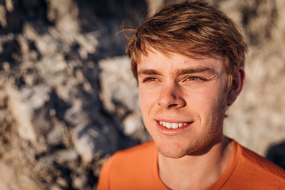Diesen Sommer verblüffte Jonas die Kletterwelt mit seiner waghalsigen Free-Solo-Begehung der Route „Moulin Rouge“ (IX-) an der Rotwand (2806m) im Rosengartenmassiv, einer schwierigen Mehrseillängetour, die sein Vater 20 Jahre zuvor mit Oswald Celva erstbegangen hatte.