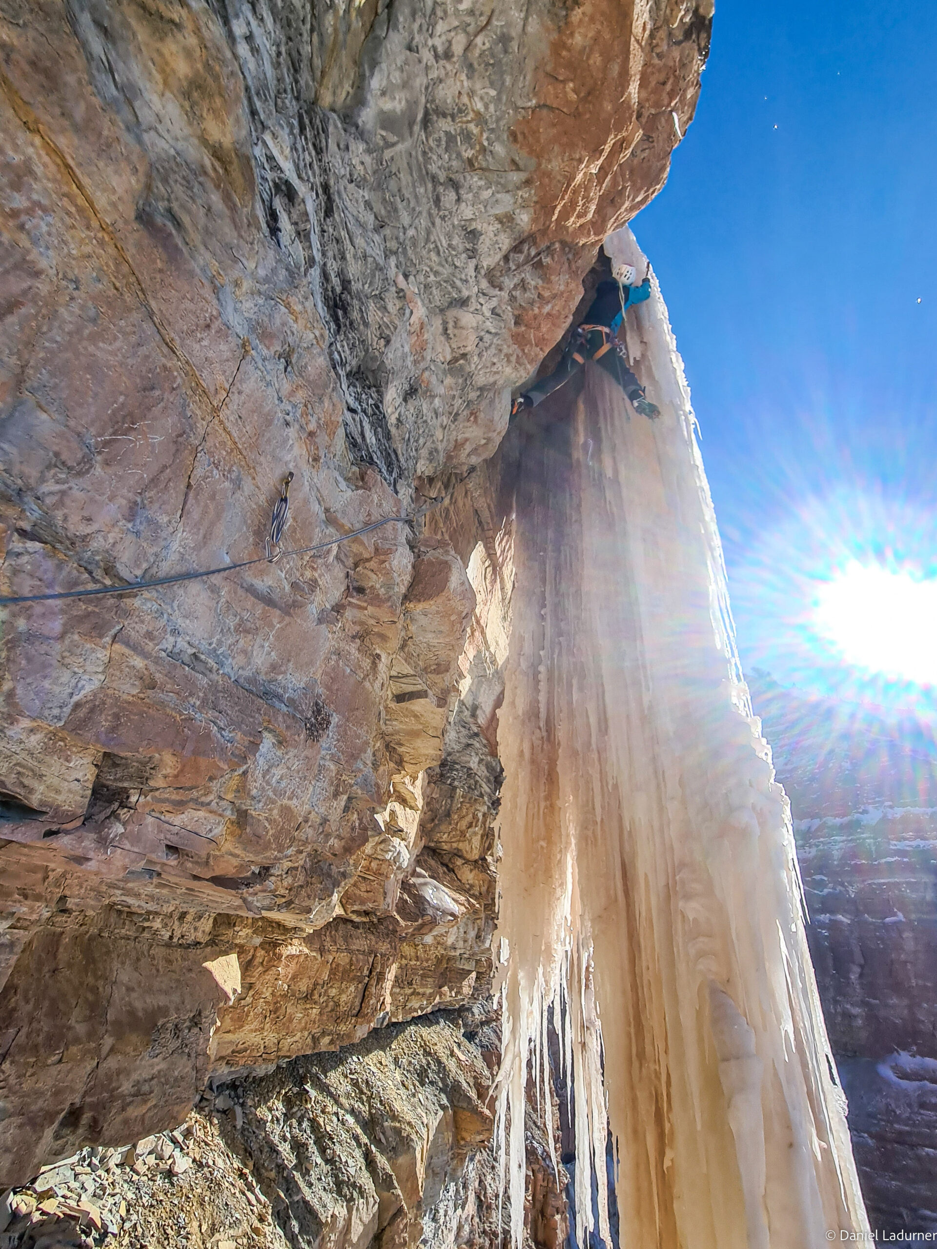 Der Südtiroler Daniel Ladurner konnte zusammen mit Sarah Haase am 10. Februar in der Bletterbachschlucht in Südtirol eine neue Mixedroute erschliessen. Die Absicherung der Route erfolgt mit Bohrhaken. Die Felsqualität ist wie bei allen Routen in der Schlucht abwechslungsreich je nach Gesteinsschicht. Die Route befindet sich taleinwärts schauend links von der Route „Erfrischend Eisig“ und bekommt am späten Vormittag Sonne. Also besser früh starten wegen der Eisqualität und dem drohenden Steinschlag bei wenig Schnee oberhalb der Route. Die erste Seillänge M7+ ist 25 Meter lang.  Die 35 Meter lange zweite Seillänge ist M7 WI4 (aufpassen auf die Bindung zum Fels des Eiszapfens). Eventuell ist noch eine 40 Meter lange 3. Seillänge möglich (WI3+). Abseilen dann über Abalakov-Sanduhren. Die Erstbegehung ist wohl die letzte Linie in dem Bereich „Gorz“ dem hintersten Teil der Schlucht, welche bislang noch nicht geklettert wurde. Wahrscheinlich war der Zapfen noch nie so groß. Der Zustieg, der gleiche wie zu den Routen „Eisgeist“ und „Eistänzer“, dauert etwa eine 1 Stunde.