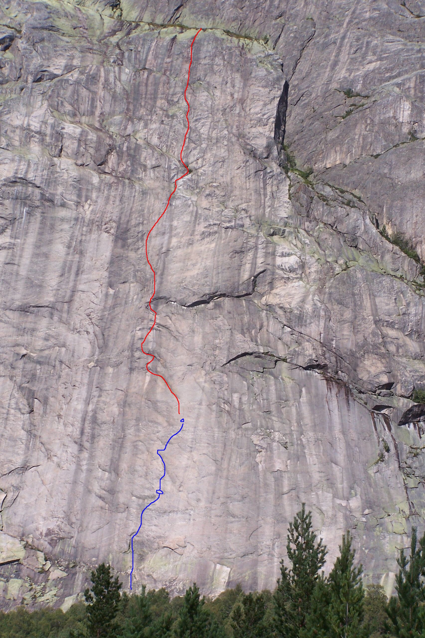 Mit diesem Bild als Motivation von Ralf Reißig gings nach Norwegen. ( Blau war bereits gebohrt, Rot die Idee der weiteren Linie)