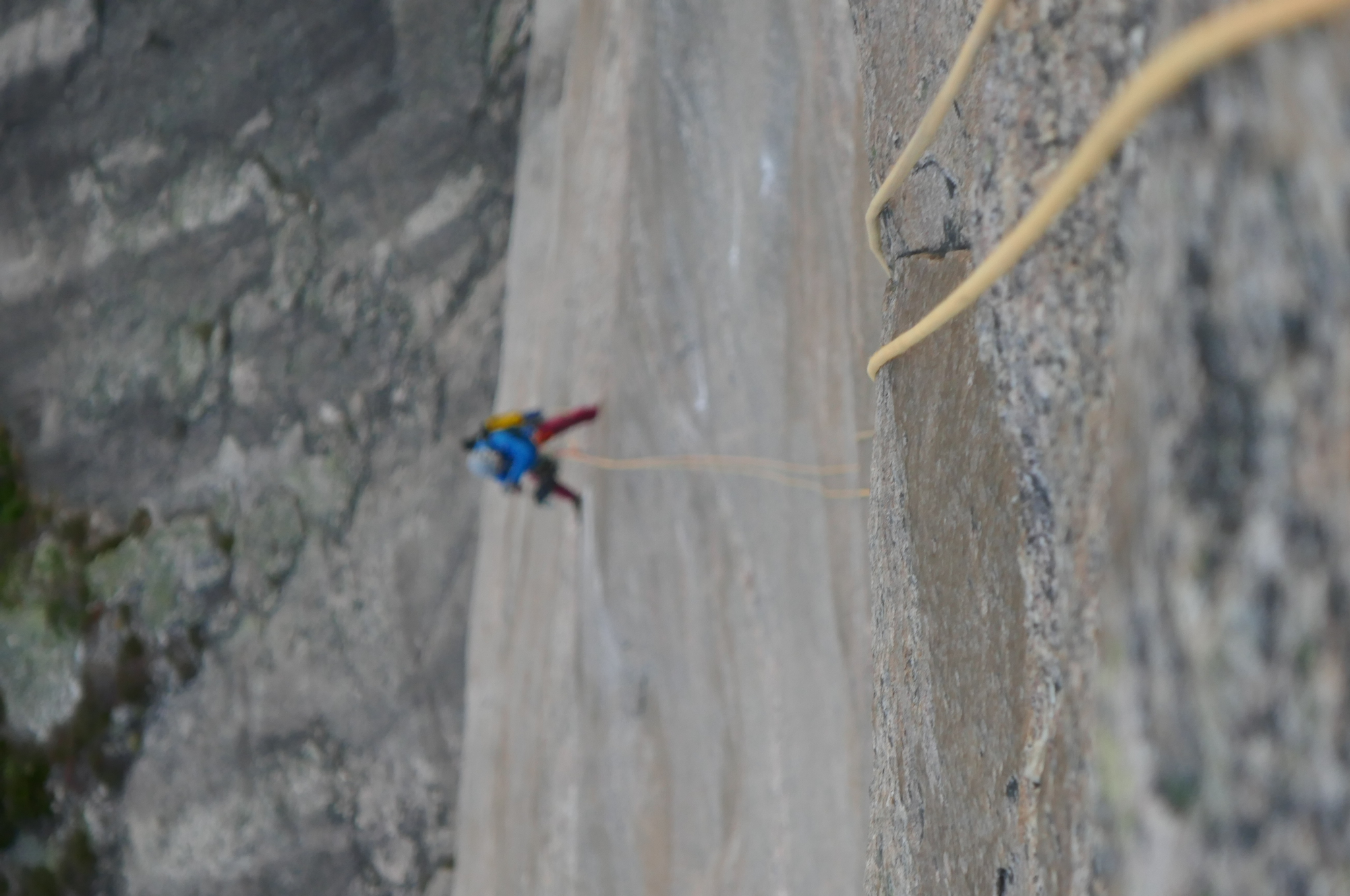Die 5. Sl scheint von oben wie von unten gesehen spiegelglatt. Zum Glück ist der Fels rauher als im Yosemite.