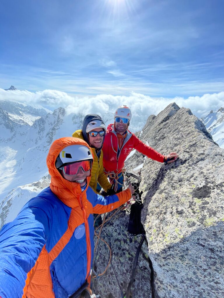 Der vierte Tag erlöst uns von der kalten Nacht. Ich bin ziemlich erledigt und froh, dass Filippo die Initiative ergreift. Filippo führt uns mit einem Abseiler und durch eine Rinne auf den Normalweg. Schnell führt er uns durch das kombinierte Gelände auf den Gipfel und in die Sonne, endlich mal ein bisschen warm!