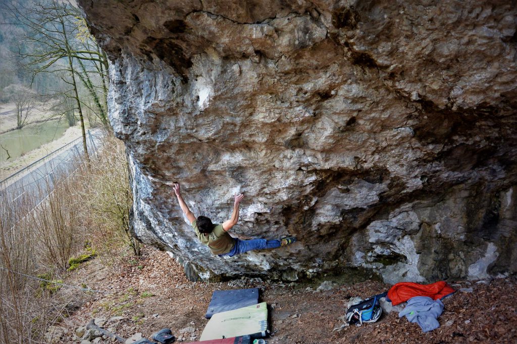 Moritz Welt kann mit „Hips don’t lie sit“ (Fb 8b/+) oder (Fb8b+) in Franken sein, nach eigener Aussage, bisher schwerstes Boulderproblem lösen. Moritz meinte, dass der „sit“ ist auf jeden Fall relativ leicht für den Grad ist. So beginnt der Boulder mit vier Zügen, so im Grad Fb7b+ bis zum Stehstart. Weiter geht es technisch anspruchsvoll mit vielen Hooks und Schulterzügen. Glückwunsch Moritz!