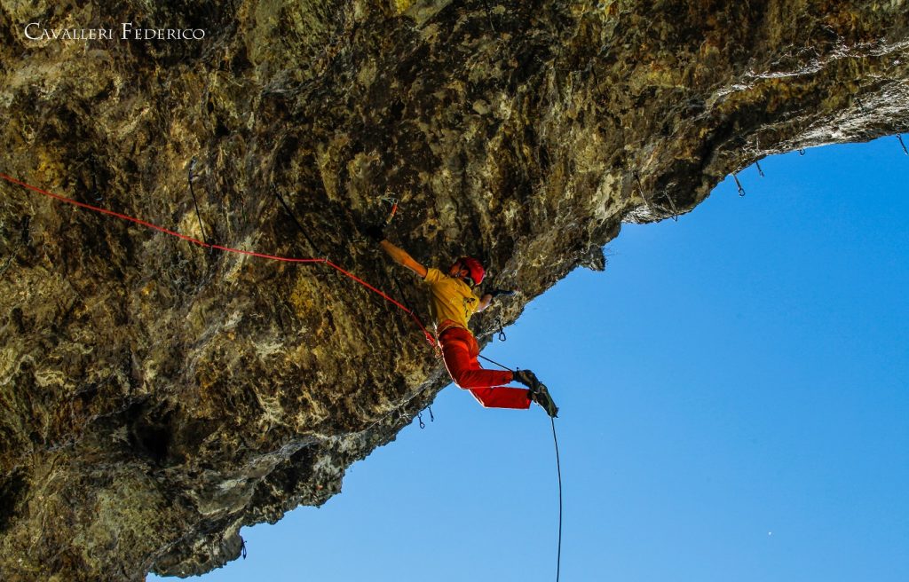 I think it’s one of the best drytooling routes I’ve ever climbed. So aesthetic, with beautiful moves on perfect scenery. I would like to invite all DTS drytoolers to come in Iseo, to try the route and admire a fabulous view from the cave. As for the grade, I propose D15 (obviously in DTS)! „