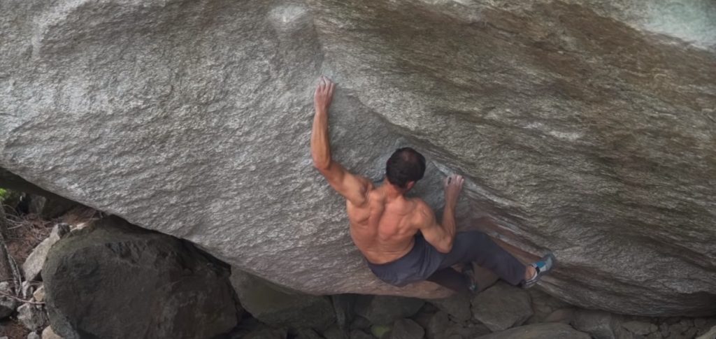 The Bouldering master Bernd Zangerl reports back after a long injury break with a hard first ascent in the Val di Orco. The result is „Il Colonel“ a boulder in the intermediate grade 8B+/C. The Boulder starts with 2 brutal single moves right at the start.