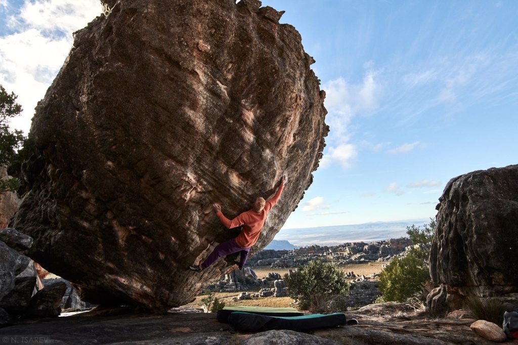 The Russian Vadim Timonov, currently in the Rocklands (South Africa), was able to climb his fourth 8C on his fifth day of bouldering ‚Black Eagle Assis‘. Two days later the flash of ‚Hipster whale‘ (8B) followed. His third flash in this grad . The crucial tips he got from a video by Paul Robinson. ‚Black Eagle Assis‘ was the first ascented by Fred Nicole in 2002. Just last year, David Graham and Daniel Woods were the first to repeat the boulder.