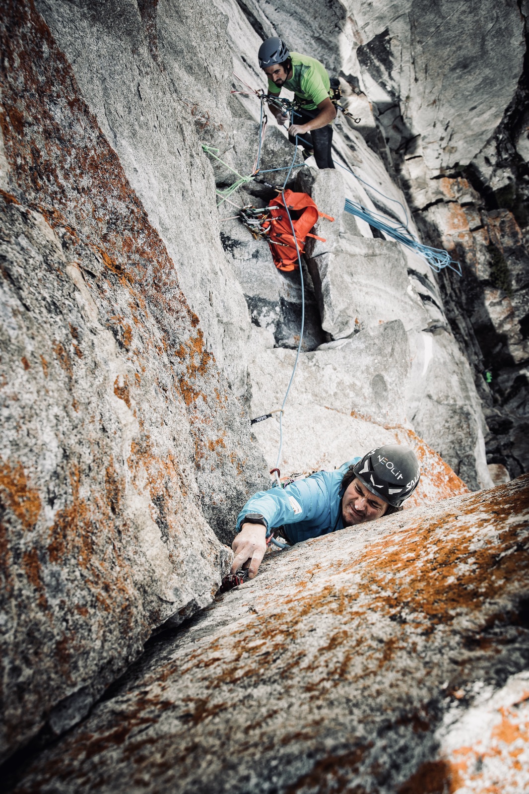 Simon and Manuel Gietl tried the strikingly wall of the Durrer Spitze already ten years ago. This white wall, which is crossed by some striking black water stripes, was named because of the same color with the killer whale of the route. In the fall of 2009, they managed to develop the first two pitches, including the crux in the second pitch. Two large (probably loose) boulders on the second stand prevented a further clambering at that time. So they decided, as the blocks could not be transported in the valley, first rappel and let the project rest. It took almost ten years to get back in and complete the project. After further attempts to lift them out of the wall, one saw that the two blocks had become wedged so that they did not pose any danger. A steep rift with some loose scales in the third and a technically challenging spot in the sixth pitch are other cruxes. The rest of the route is logically along cracks and over some little overhangs. The stands are equipped with normal hooks, the climbing must be secured except for a few pitons in the 2nd and 6th pitch itself. The approach is 1h to 1.5h. Descend northeast over 1 x 40 m abseilen and the rest along the gutter or southwest over steep ditch on foot.