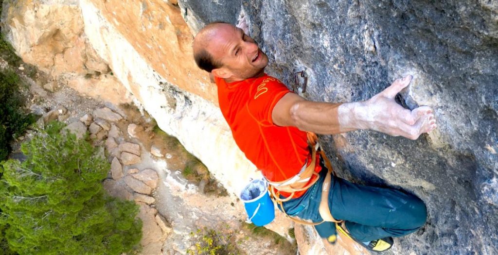 “I tried long time ago, it was an old nemesis. The first it was after I did “La reina mora” (2015). Then I tried 2 years ago but conditions were hot. Last year I invested some time on it, during 2 months and 5 there and go from Grenoble…and I finished with a pulley damaged. I did only 10 tries and I was falling 8 times at the crux at the end, at this deadpoint move to the twofingerpocket left hand. This year I tried Andrada’s beta at the crux, instead of holding the vertical crimp right hand to the twofinger pocket with the left hand undercling, I hold this one going to a gaston-sloper right hand and then to the twofingerpocket left hand. It’s harder physically but it’s less random. I did it directly with this beta this time! Dani found this beta but I think I’m the first to send the route with this sequence (watch the video up). Rock starts to be polished in this one with amount of chalk. Very dirty. Please brush the holds of your projects!”