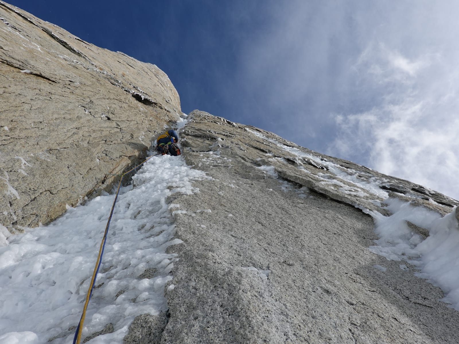 Italians Alessandro Baù and Giovanni Zaccaria have established a new line on Cerro Piergiorgio east face. Acting on a tip-off from Rolando Garibotti, they followed a thin line of ice circa 200m high (WI5 – M5), described as being „not too long but very beautiful.“ This enabled them, after one abseil, to join Esperando La Cumbre for 150m, established in 1996 by Maurizio Giordani and Gian Luca Maspes. The two then continued onto the summit ice mushroom (M4 – M6)