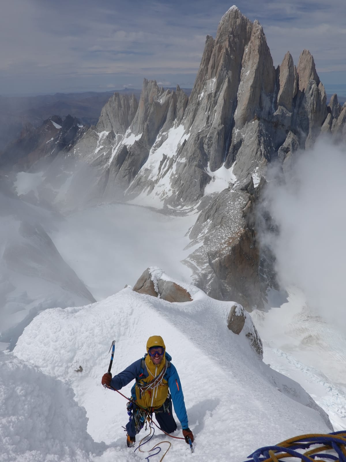 Italians Alessandro Baù and Giovanni Zaccaria have established a new line on Cerro Piergiorgio east face. Acting on a tip-off from Rolando Garibotti, they followed a thin line of ice circa 200m high (WI5 – M5), described as being „not too long but very beautiful.“ This enabled them, after one abseil, to join Esperando La Cumbre for 150m, established in 1996 by Maurizio Giordani and Gian Luca Maspes. The two then continued onto the summit ice mushroom (M4 – M6)