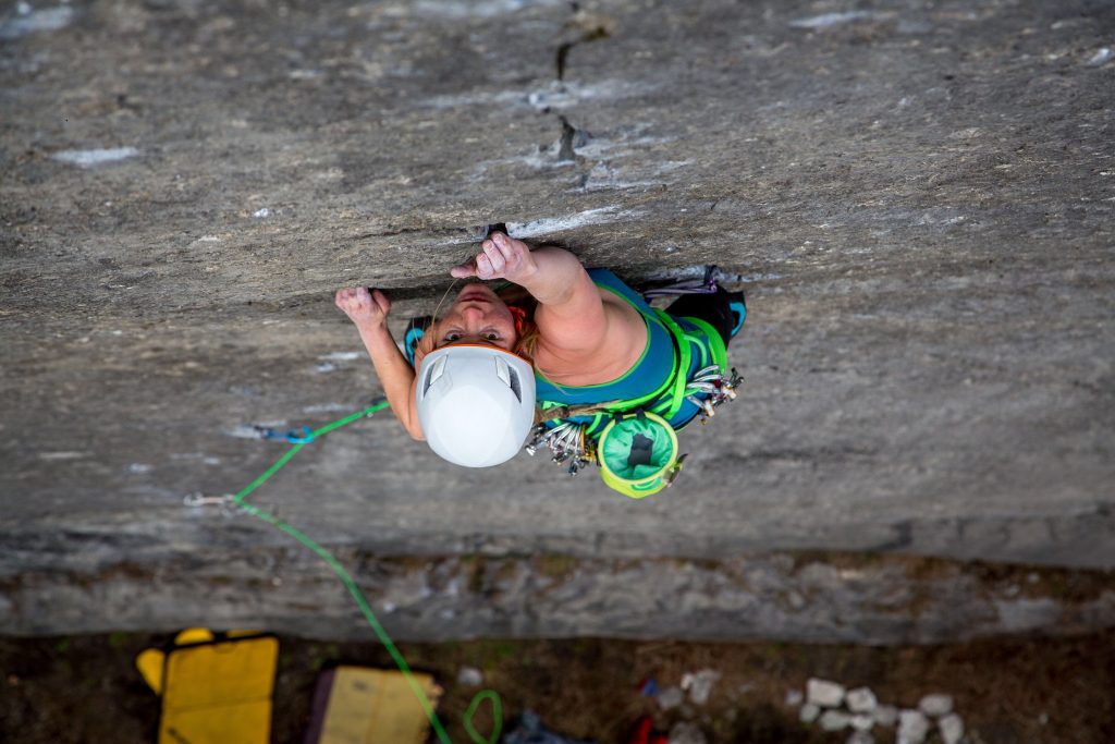 A other strong woman could climb the „Prinzip Hoffnung“ 8b/+ (E9/10) on the Bürser Platte in Vorarlberg (Austria): After Barbara Zangerl, Nadine Wallner and the British Madeleine „Maddy“ Cope, she was able to Lena Marie Müller, the fourth female „redpoint“ ascent from „Prinzip Hoffnung“. The „Prinzip Hoffnung“ is one of the most famous trad routes in Europe. Beat Kammerlander had climbed the route in 2009 for almost ten years. So far, the extremely small holds route has only been visited twelve times, including Alex Luger, Jacopo Larcher, Fabi Buhl, Babsi Zangerl, Michael Gunsilius, Christian Bindhammer, Nemuel Feurle, Michi Wohlleben, Nadine Wallner, Madeleine Cope and Lena Marie Müller yet. Also her friend Johannes Ingrisch climbs this trad classic. Because of the small holds wall exposed to the sun, it is only possible to climb it in winter, when temperatures are low. „A dream come true! I have so much to say about this route and the process, but now I first have to let it sink in! @johannes.ingrisch for our shared journey and your endless support! Would have never been possible without you! So proud of you sending as well! Thanks to the people supporting me and to @kammerlander_beat for establishing this route. Prinzip Hoffnung was a route I always had in mind but never really dared to dream about. When I finally started trying it 6 weeks ago I immediately fell in love with it and realised it was the perfect route for me: The first part is a crack, which is followed by some tiny holds and footholds, on gear that is scarce but (as I hoped) enough for me to try my best on the route. The name of the route says it all: you have to hope that everything stays in place – the gear and the feet on the footholds! Living in Innsbruck, we decided from the beginning to take the train in order to climb it with a footprint as low as possible In the end we saved around 2000km. I even thought about aiming for a ‘greenpoint’ (how I would name it when doing sth by bike/train ) but we had to take the car as soon as we brought crashpads for the lower part of the route. Of course, taking the train takes way longer and after freezing the whole day you rather want to jump in the warm car whenever you’re done, but at the same time it allows time to work/ or sleep;) and it was totally worth it.“