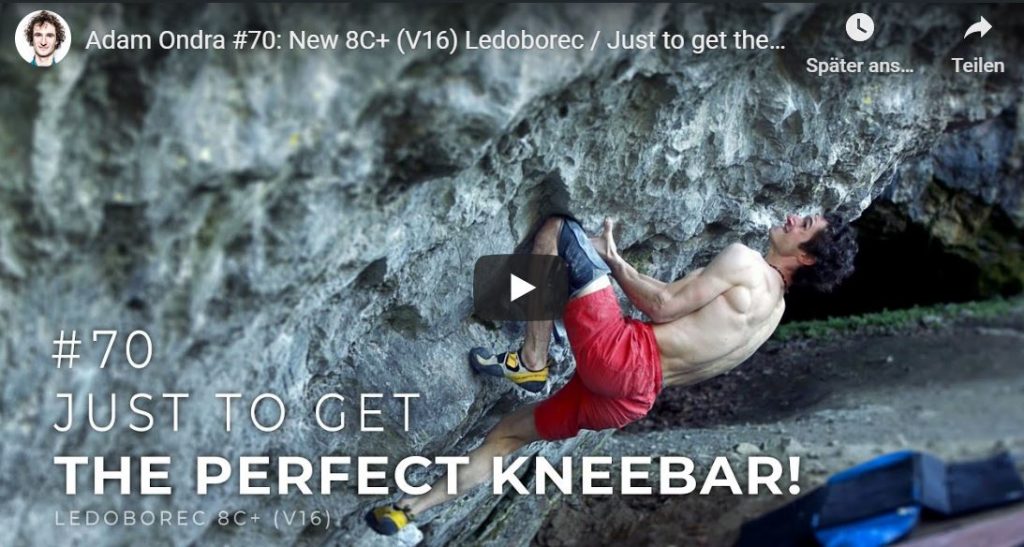 After “Brutal Boulder” (8C +) Adam Ondra can now climb the next top boulder in his home crag in the Moravian Karst (Moravský kras). This boulder is also quite long for a boulder with 28 moves and is a combination of different boulders including „Iceberg“ (8C). It is only possible to use a „Kneebar“ to rest. This is Adam’s profession, just remember his and the world’s most difficult top route „Silence“ (9c).