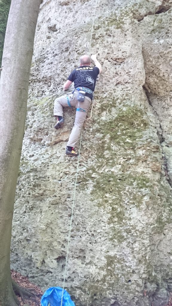 Due to a serious accident in Hersbrucker Switzerland in Northern Bavaria (Germany), we would like to point out the following: Please note the DAV’s recommendation for top roping at individual fixed points, which is unfortunately not so well known (Outdoor-Klettern BLV Verlag 2013, p. 76 or outdoor climbing license (in German)). Checks the bolts for the toprope for possible damage and the rock around it for strength. This also applies to all neuralgic bolts. A toprope should always be set up using a screw carabiner or two quickdraws oriented towards one another. In addition, if there is only one toprope lower off, the last intermediate safety device should remain attached as long as it is not too far away. If the toprope lower off takes place from the lead, all fixed intermediate securing devices should remain attached, ideally in the rope line running to the safety device. This makes it more difficult for someone to unintentionally unhook the last intermediate backup. Please report any damaged, loose, or sanded bolts that you notice, but also larger loose blocks to the local climbing associations and not only post them on the Internet. Mark them with a simple X using chalk or tape. If possible, take meaningful photos and write down the damage more precisely (x. Hook in route y).