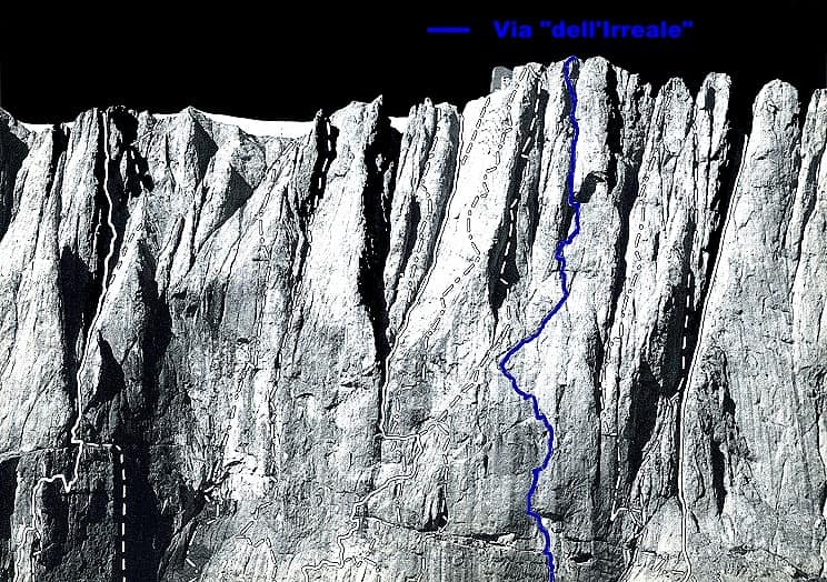 Der irreale Corona Sommer nährt sich dem Ende, was real spektakuläres am Berg war nicht dabei. Ändert sich, als Martin sich meldet – mit Sehnsucht nach Winter und abgefahrene Alpine Abenteuer. Ersterer wird wohl wie immer erst im Dezember realisiert, letzteres…nun, wie immer wär Dolomiten was, Marmolada Südwand – der größte Muggl der Dolomiten ist aus Kalk – irre…al. Die Route steht schon fest, genau: „Via dell’Irreale“, 1350m, 33 SL, bis 7a+, no Bolts: Martins Idee. Komisch, der Alpin-Ethik-Idealist konnte sich mit dem Vorschlag „Via dell’Ideale“ nicht anfreunden?!