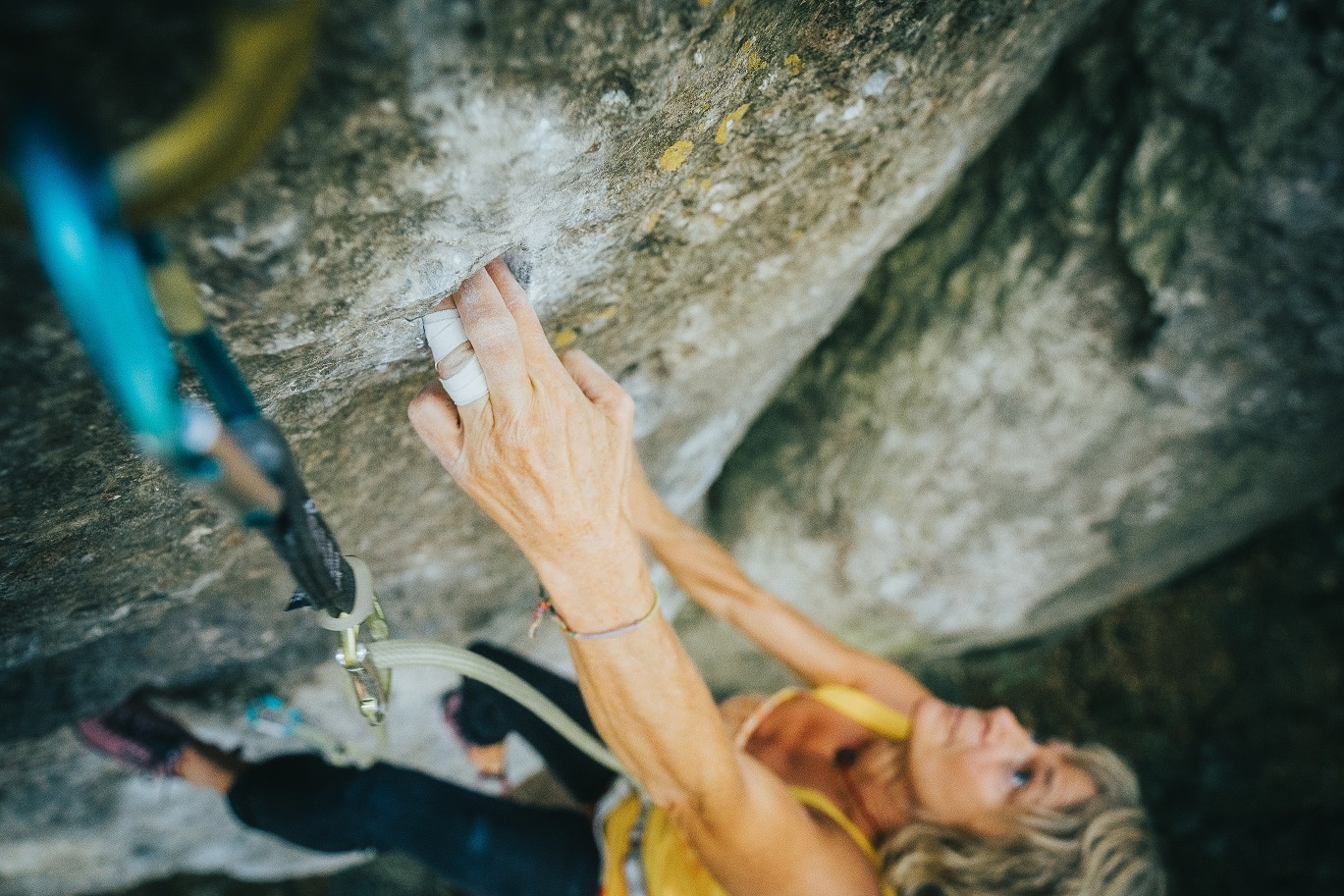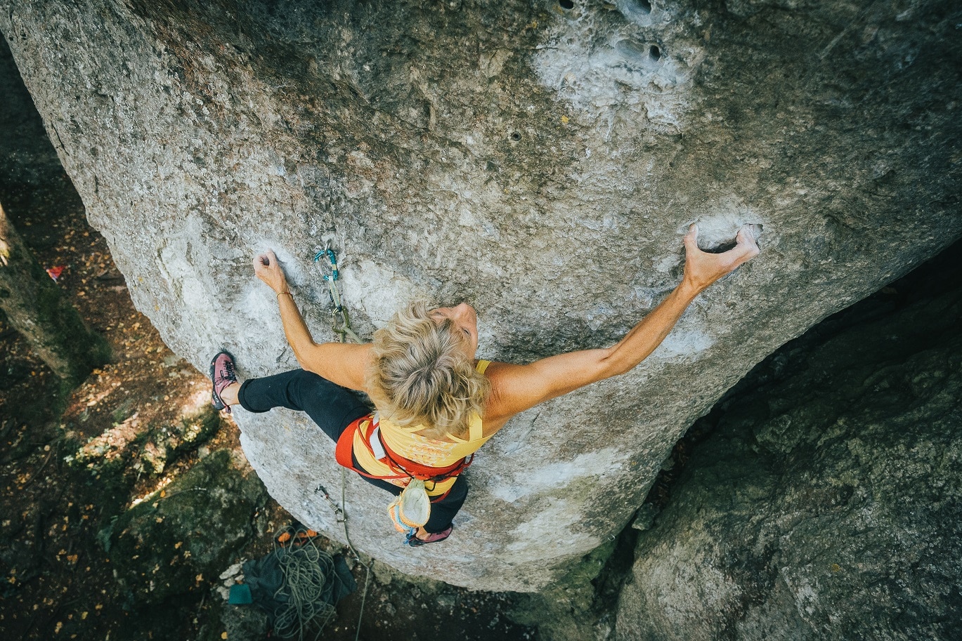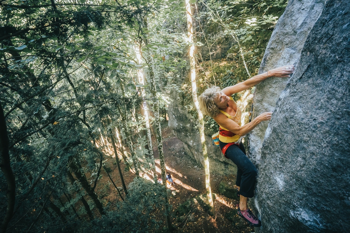 Sich im „hohem Alter“ Ziele zu setzen, die früher Limit waren, ist mittlerweile zum Glück üblich. Ältere Kletterer, wie Irmgard Braun oder Marcel Remy zeigten was möglich ist und das Spaß und Leidenschaft beim Klettern keine Frage des Alters ist. Im September hat sich auch Ute Blaurock einen Traum erfüllt. Mit 58 Jahren konnte sie im September mit „Daywalker“ (9+/10-) am Kanzelfels ihre erste 8a-Route klettern und das in Franken ;-). Ute war nie die verbissene Kletterin. Der Zufall wollte es, dass sie bei der Suche nach einem anderen Studentenzimmer in der legendären Kletterwohngemeinschaft in Oberschöllenbach bei Nobert Bätz, Wolfgang Güllich und Kurt Albert gelandet ist. Aber selbst in dieser Zeit kletterte sie noch gemütlich die 6er und 7er und war sportlich eher vielseitig unterwegs. Ihre erste 9- kletterte sie erst Jahre später.