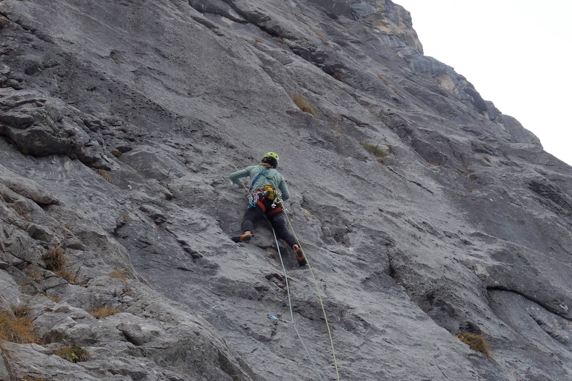 - Amelie am Beginn der Crux in der 4. Seillänge der „In Memoriam Matthias“. Sieht nicht so schwer aus? Eigentlich? Dachte Martin auch.
