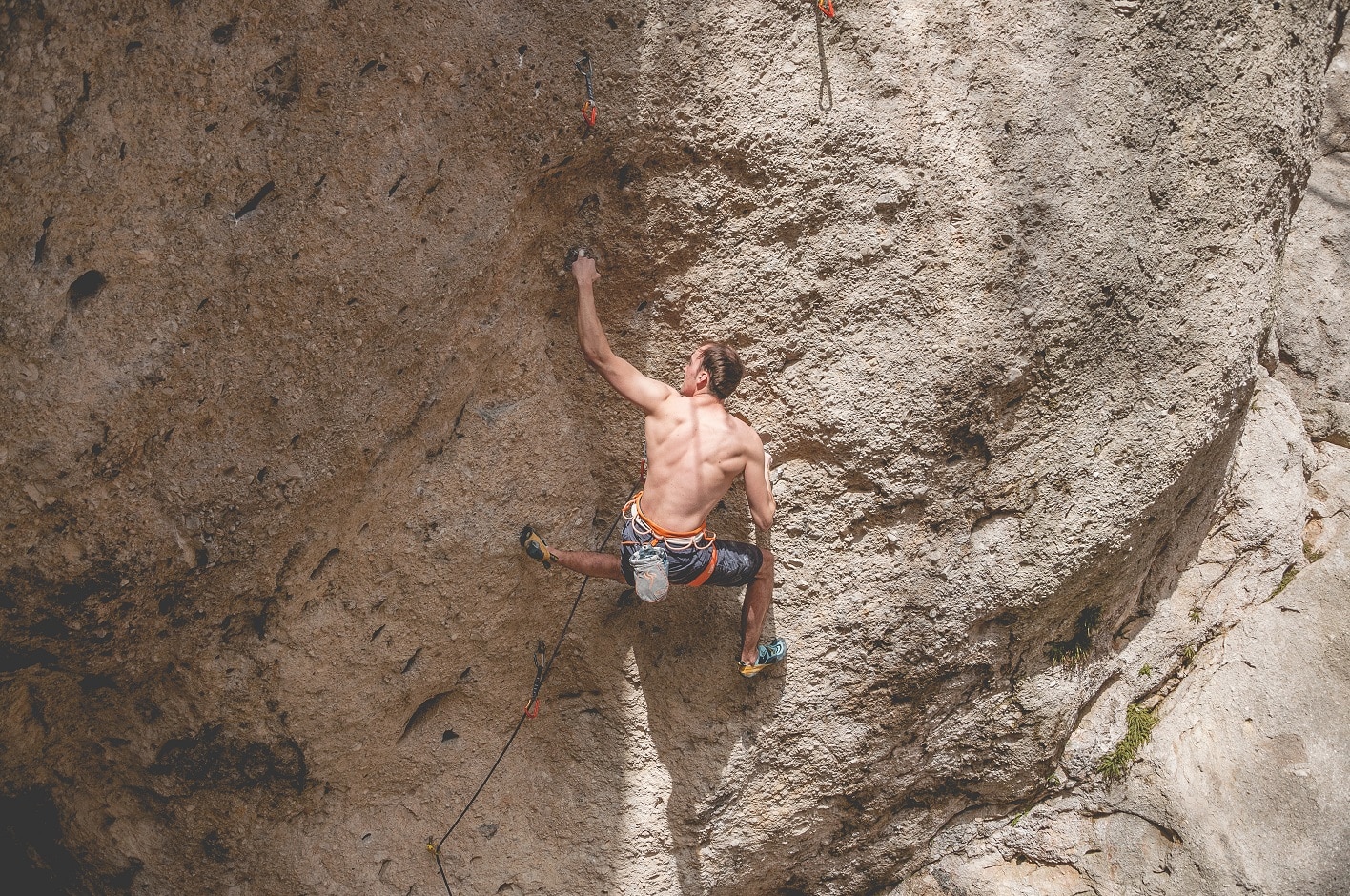 „This short but intense route starts with 10 moves around 8b, followed by a boulder problem with 5 monos in a row. As I’m not very strong in pockets, I spent almost 20 sessions and 50 tries to make it.“