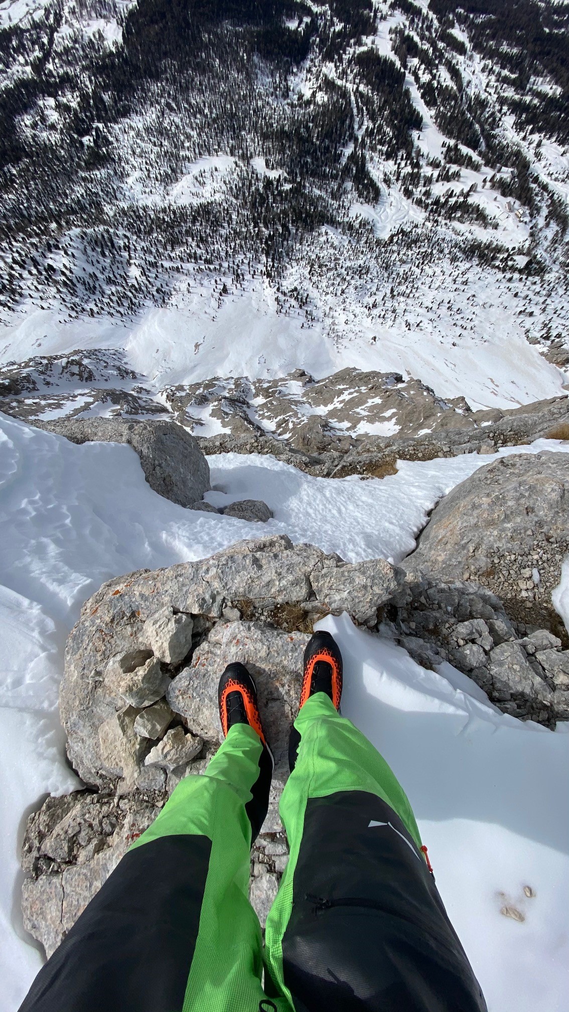Just one week after the successful first winter solo ascent on the central pillar of the Heiligkreuzkofel, the South Tyrolean climber Simon Gietl returned to the west face of the summit via Val Badia and climb the famous „Große Mauer“ (VII-), also as solo ascent. The route was opened in 1969 by Reinhold Messner and Hans Frisch.