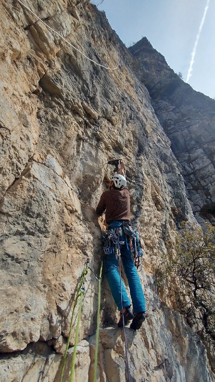Chris-Jan Stiller, an active first ascentist in Saxony, can’t leave it alone in other regions either, of course. Together with Sebastian Thiele, he found a beautiful route on the Piccolo Dain at the Parete del Limaro. They named the route „Porzione Maggiore“ and it is located to the right of the „Luce Riflessa“ route.