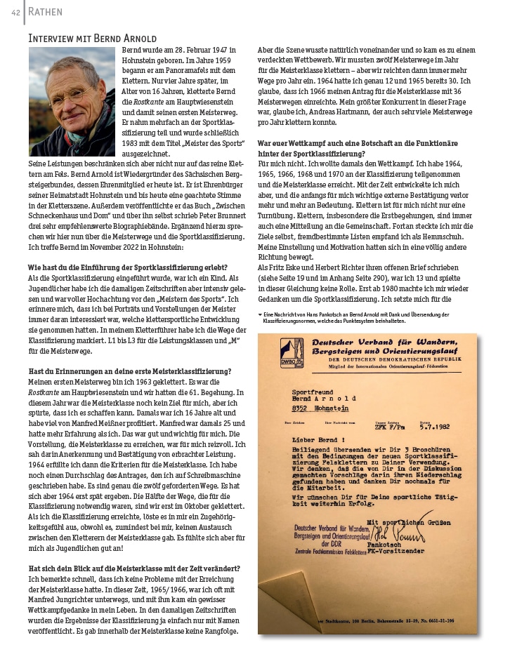 Vermutlich waren auch Bernd Arnold, vielleicht auch Dieter Rülker, erfolgreich. Mit Anton Schröter konnte auch ein Kletterer zwölf 74-Meisterwege free solo klettern.