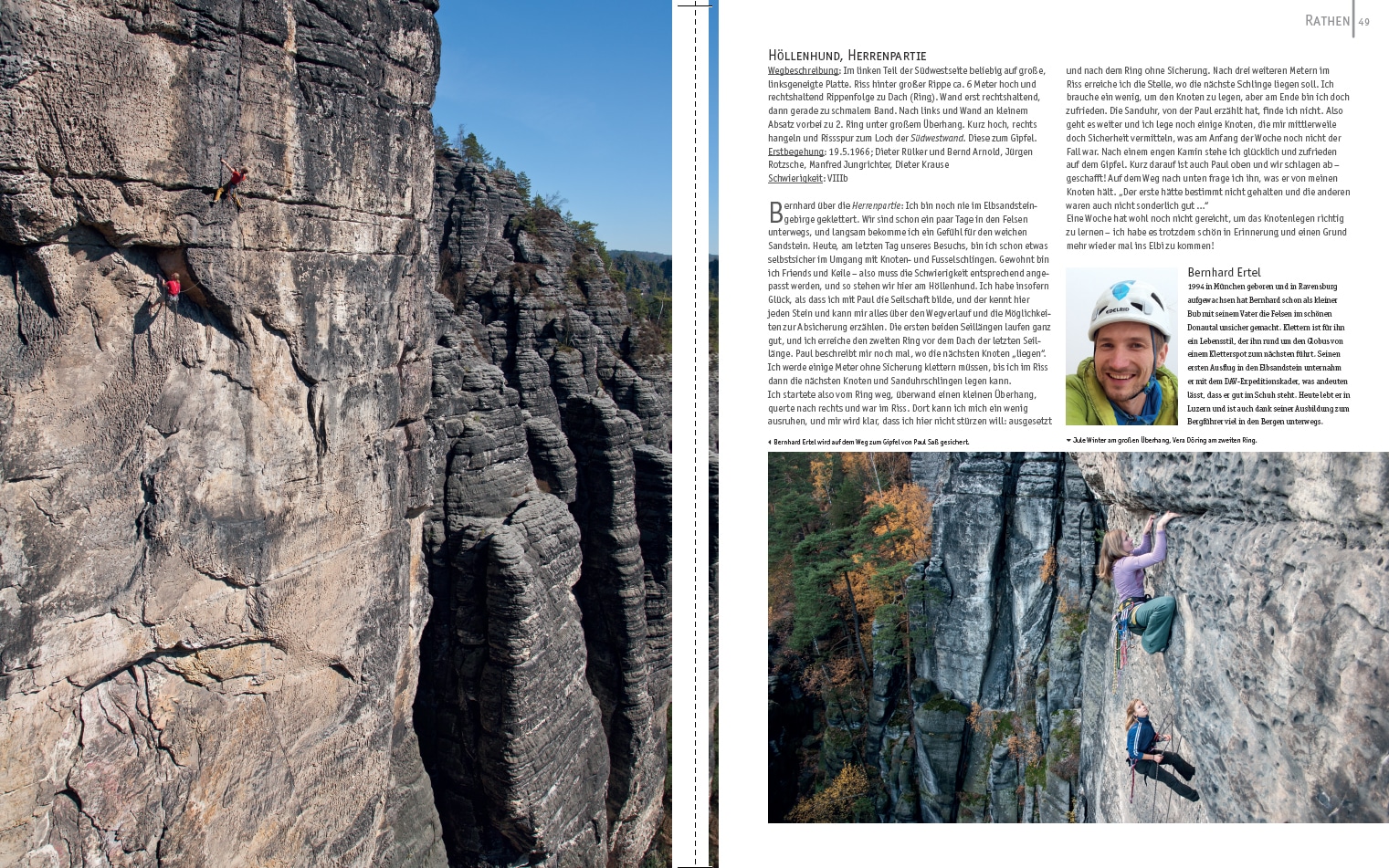 10 Jahre lang lief die Mission von Uwe Daniel. Denn so lange dauerte es, bis alle 92 Meisterwege fotografiert waren, welche die Grundlage für diesen neuen Bildband darstellen. Dabei war es Uwe am Anfang gar nicht bewusst, dass das das Ziel sein sollte, denn am Anfang stand einzig und allein ästhetische Kletterfotografie. Doch bei den großen Linien fiel immer mal wieder ein Hinweis auf die legendären Meisterwege.