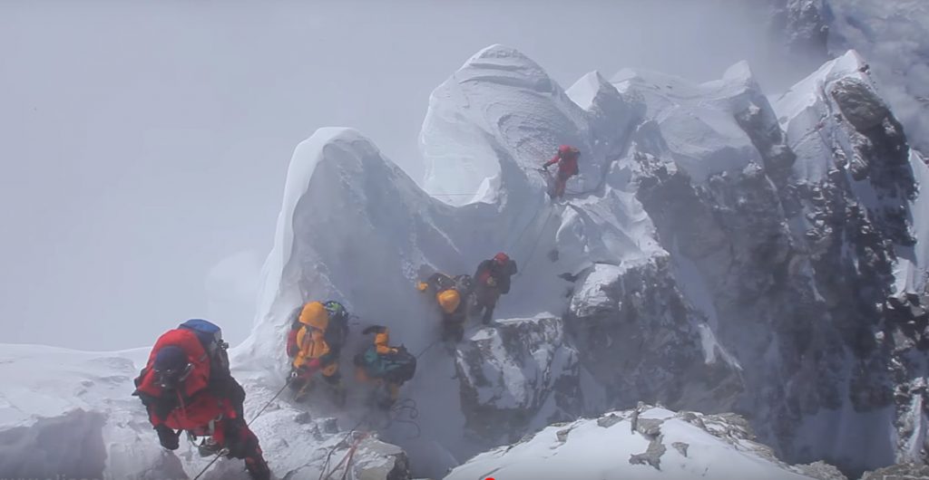 Der 39-jährige kanadische Alpinist Elia Saikaly filmte im Jahr 2013 seinen Gipfelgang zum Mount Everest. Es zeigt sehr ungeschönt das letzte Stück zum Gipfel kurz vor der letzten schwierigen Hürde, dem berühmten Hillary Step auf 8790 Metern. Aus Rücksicht auf die Opfer des Erdbebens 2015 veröffentlichte er seine Aufnahmen erst jetzt. Elia selbst stand schon auf einigen Achttausendern.
