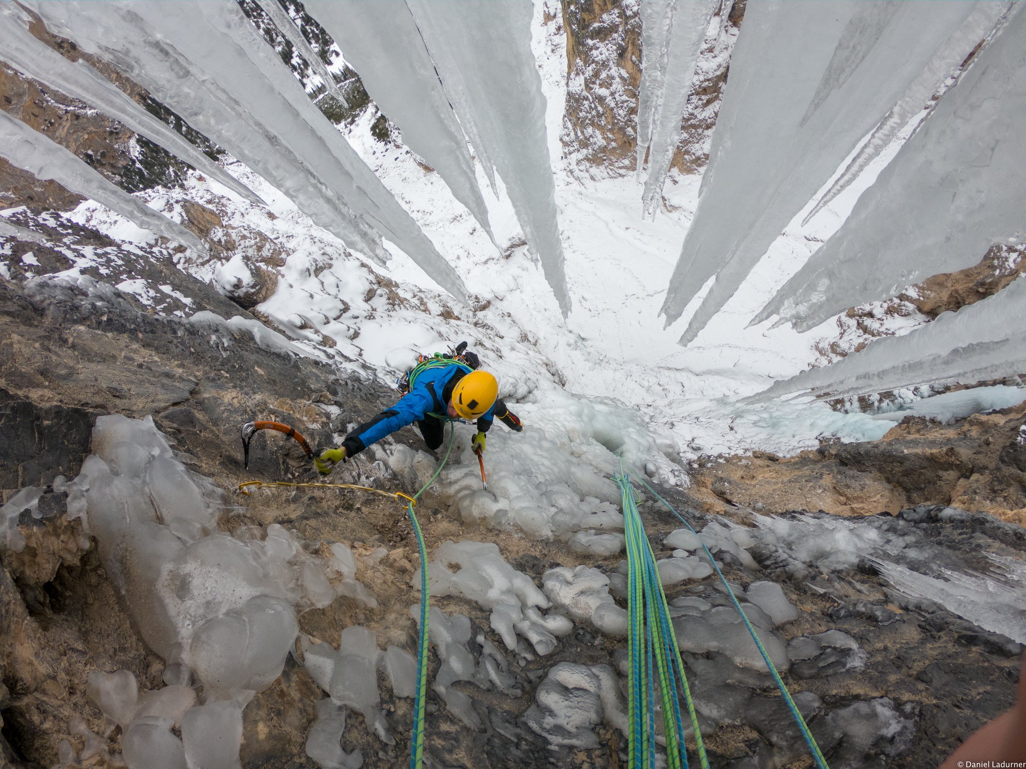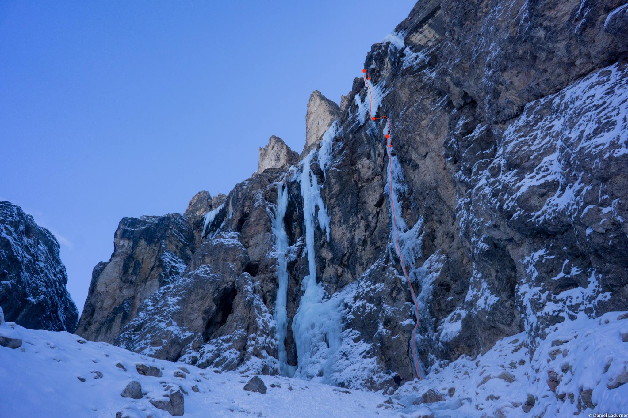Daniel Ladurner und Hannes Lemayr waren schon wieder aktiv, Heraus kam die nächste Erstbegehung „Teufelsgeige“ (WI5+ M6) in Valunga. Die Neutour befindet sich 30 Meter rechts vom „Piovra Eisfall“. Die Route beinhaltet zwei Eiskletterseilllängen mit einem kurzen Mixedkletterstück zwischendrin.